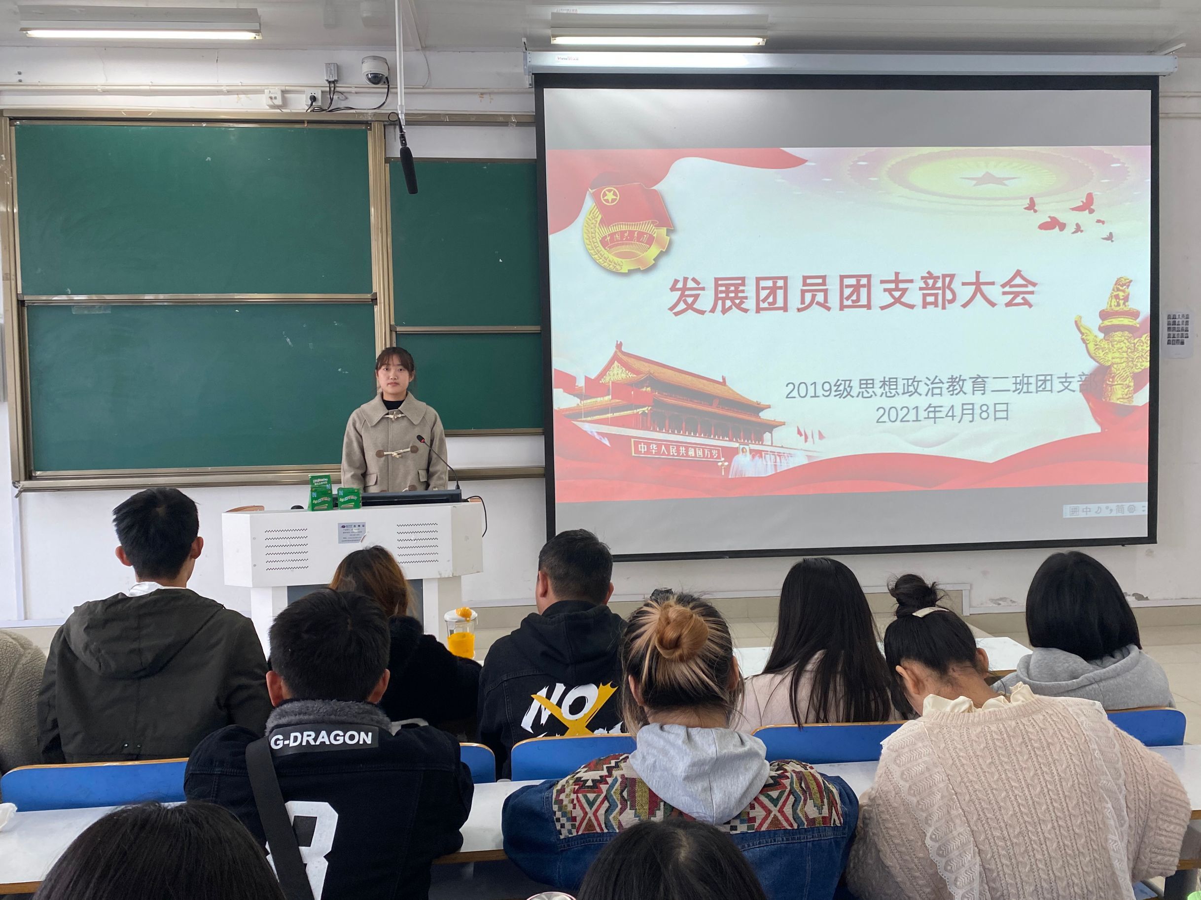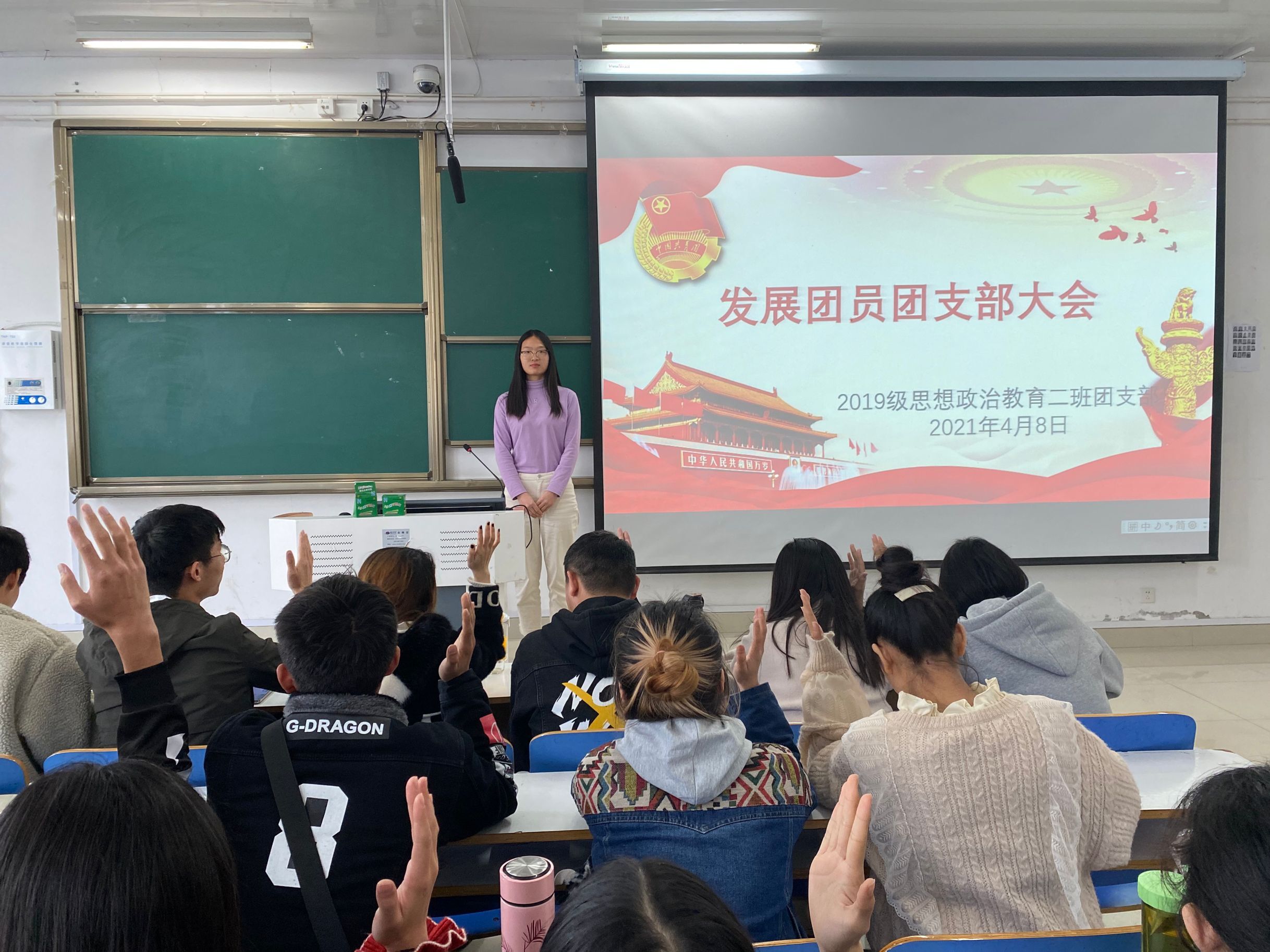 为不断深化团的阵地建设,更好地发挥团的组织优势和活动优势,4月8日上午,我院2019级思想政治教育二班在社科楼516教室召开“发展新团员,注入新力量”支部大会。2019级思想政治教育二班全体成员共同参会。会议由团支书孙雅娴主持。