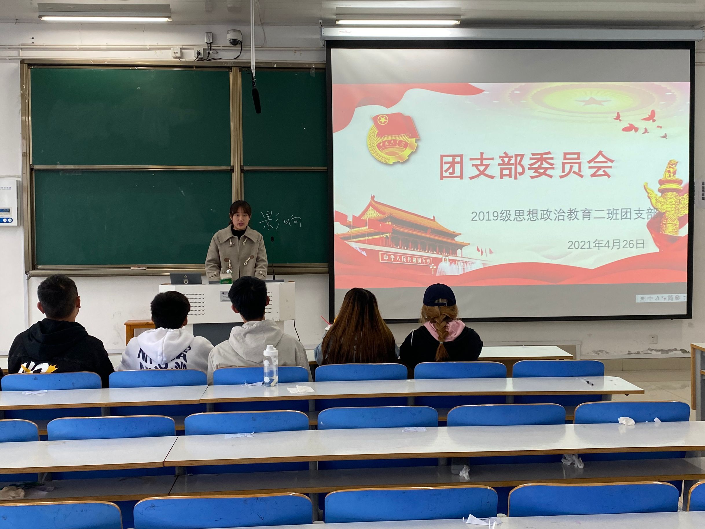 4月26日上午,太阳集团tyc59972019级思想政治教育二班于社科楼516教室召开团支部委员会。2019级思想政治教育二班全体班委共同参会。会议由团支书孙雅娴主持。