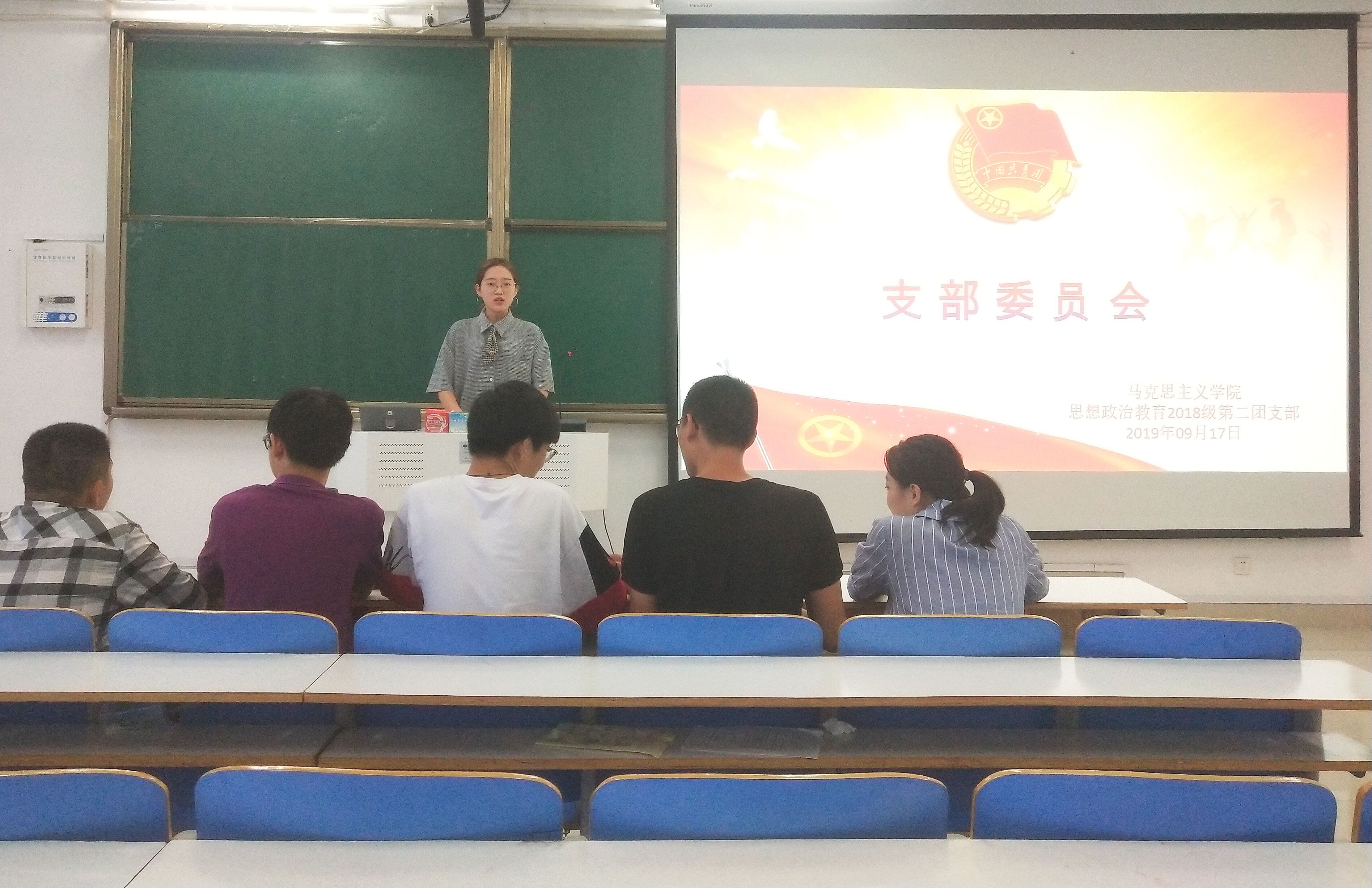 9月17日下午,太阳集团tyc59972018级思想政治教育二班在社科楼514教室开展了支部委员会。会议由团支书黄子晋主持。