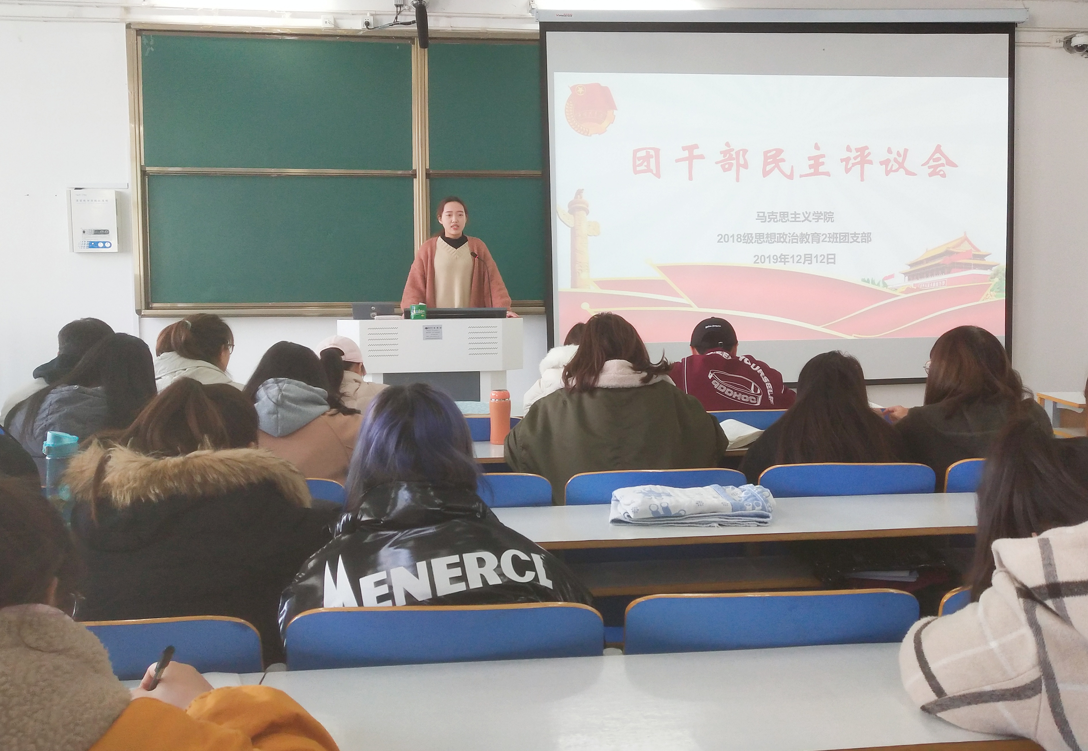 12月12日下午,我院2018级思想政治教育第二团支部在社科楼514教室顺利开展了民主评议会。2018级思想政治教育第二团支部全体团员共同参加了本次会议。会议由团支部书记黄子晋主持。