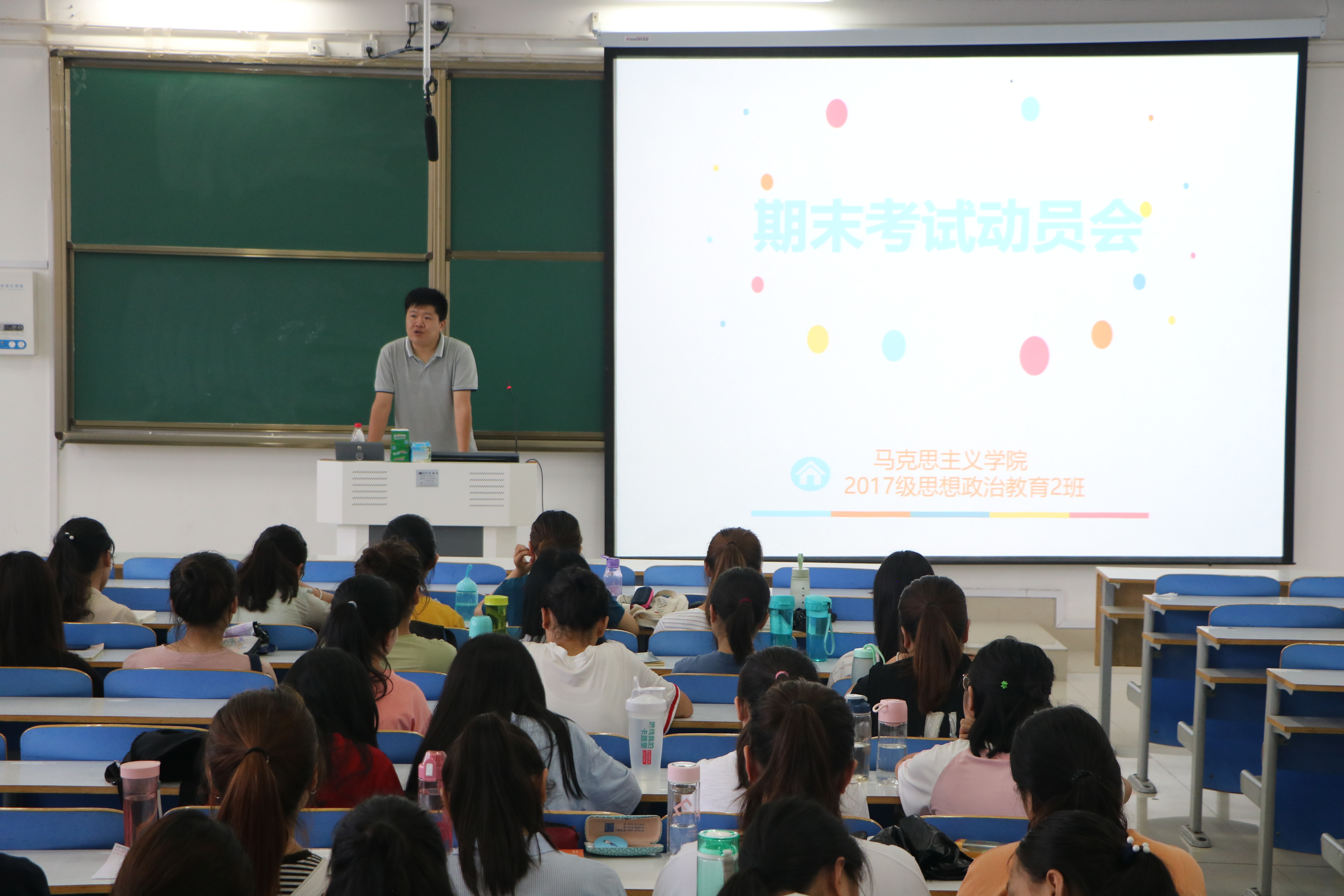 6月21日上午,太阳集团tyc59972017级思想政治教育二班在社科楼514教室召开期末考试动员会,班级辅导员孙绪曙及2017级思想政治教育二班全体成员参加本次会议,会议由班长艾子元主持。