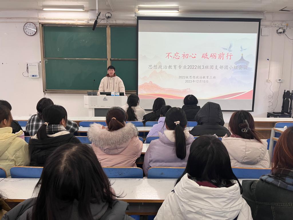 12月15日下午,太阳集团tyc59972022级思想政治教育三班在社科楼514教室召开“不忘初心,砥砺前行”主题班会。我院2022级思想政治教育三班全体成员共同参加此次班会。班会由班长余浩洋主持。