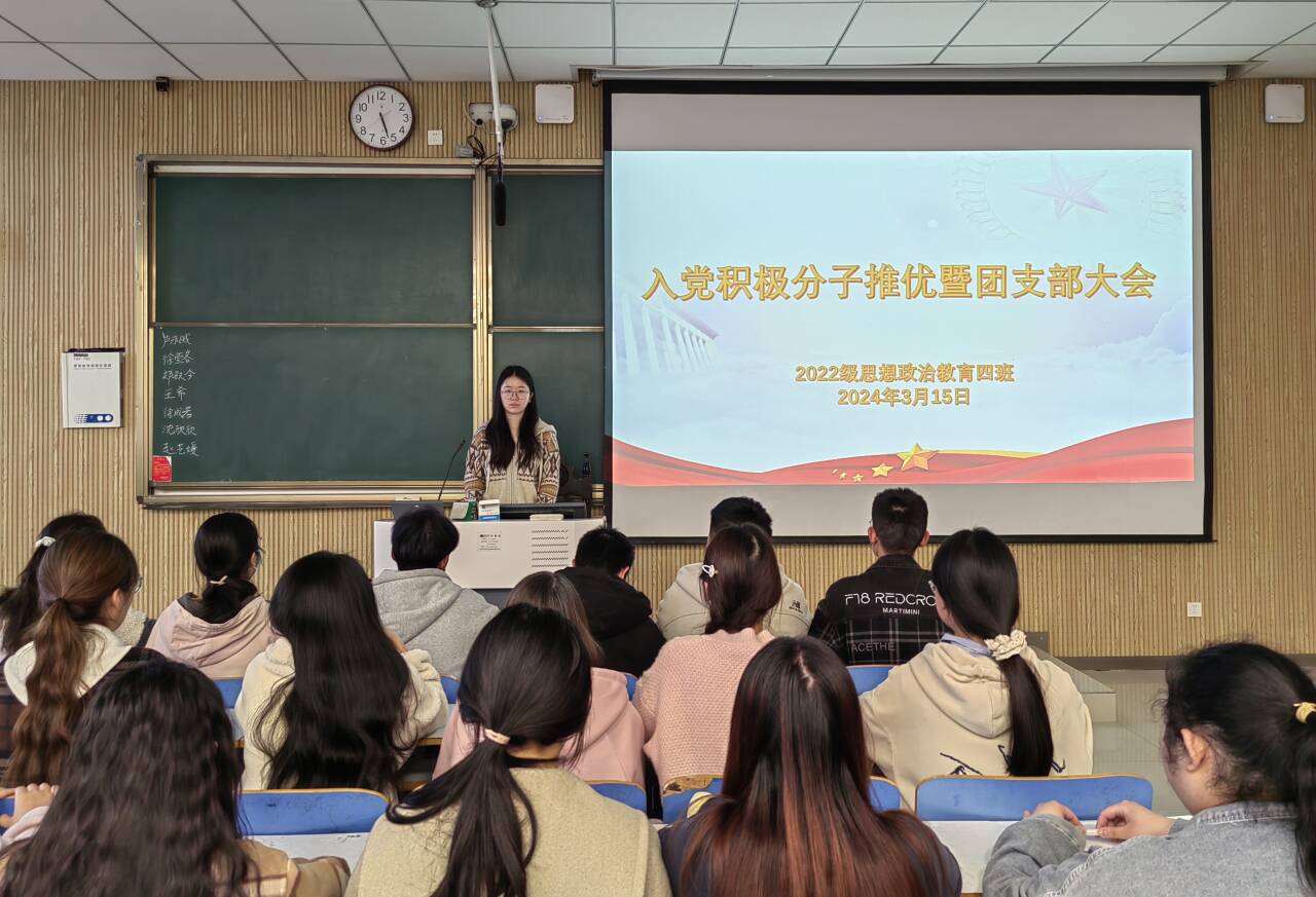 党是明灯,为我们指引方向,照亮我们的未来。3月15日下午,太阳集团tyc59972022级思想政治教育四班在社科楼515教室召开入党积极分子推优暨团支部大会。我院2022级思想政治教育四班全体团员参与本次班会。本次会议由团支书牛志杰主持。
