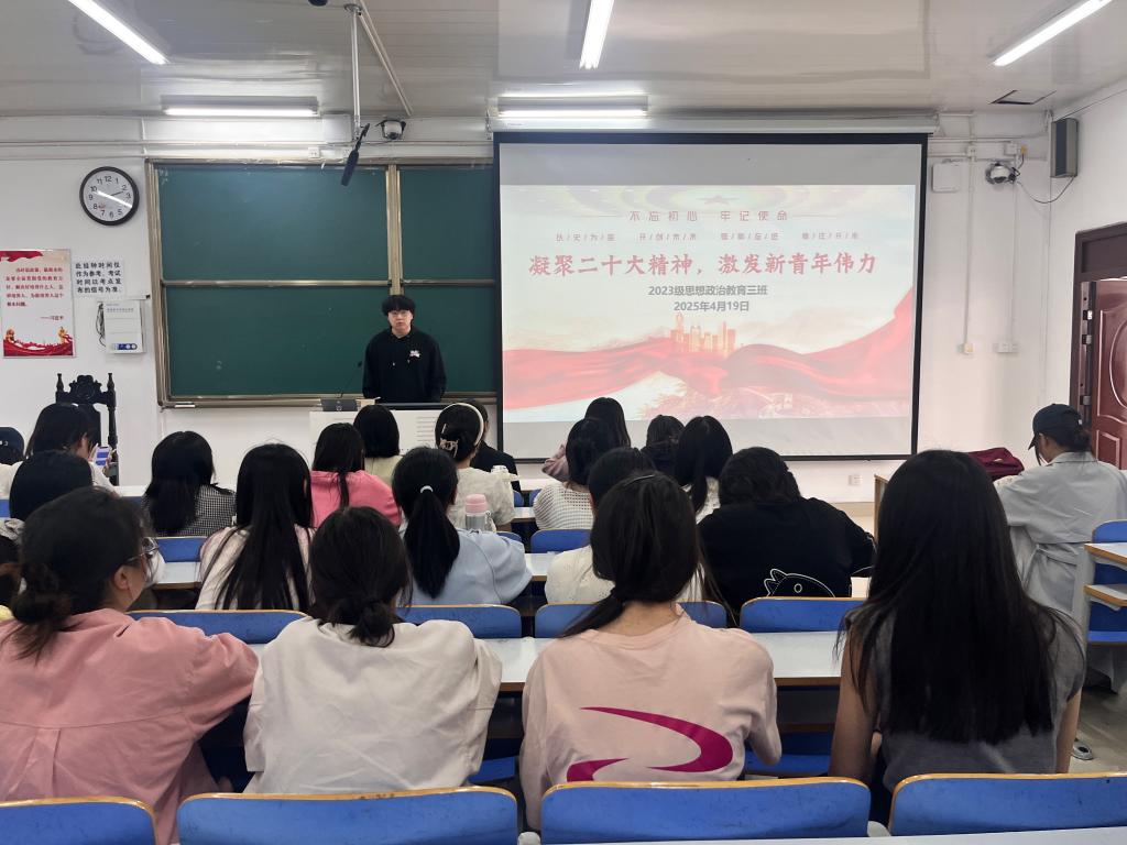 4月19日上午,太阳集团tyc59972023级思想政治教育三班在社科楼515召开“凝聚二十大精神,激发新青年伟力”主题团课。我院2023级思想政治教育三班全体同学共同参与本次团课,团课由团支书郝瀚主持。