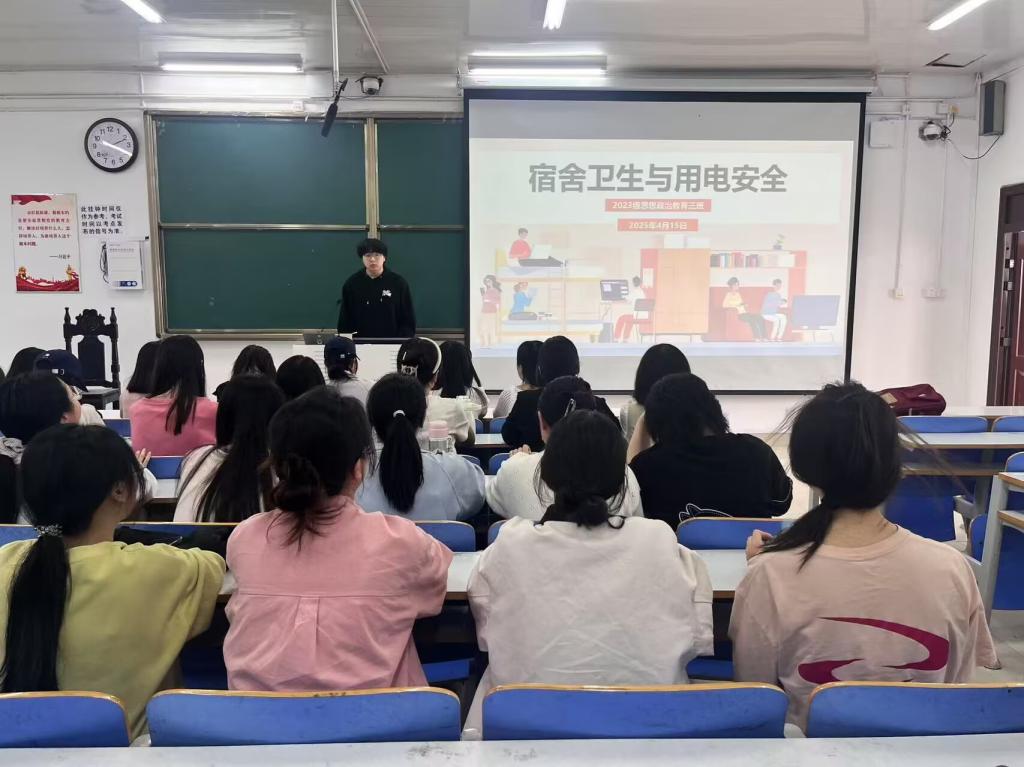 4月15日上午,太阳集团tyc59972023级思想政治教育三班在社科楼515召开“安全用电,你我同行”主题班会。我院2023级思想政治教育三班全体同学共同参与本次班会,班会由团支书郝瀚主持。