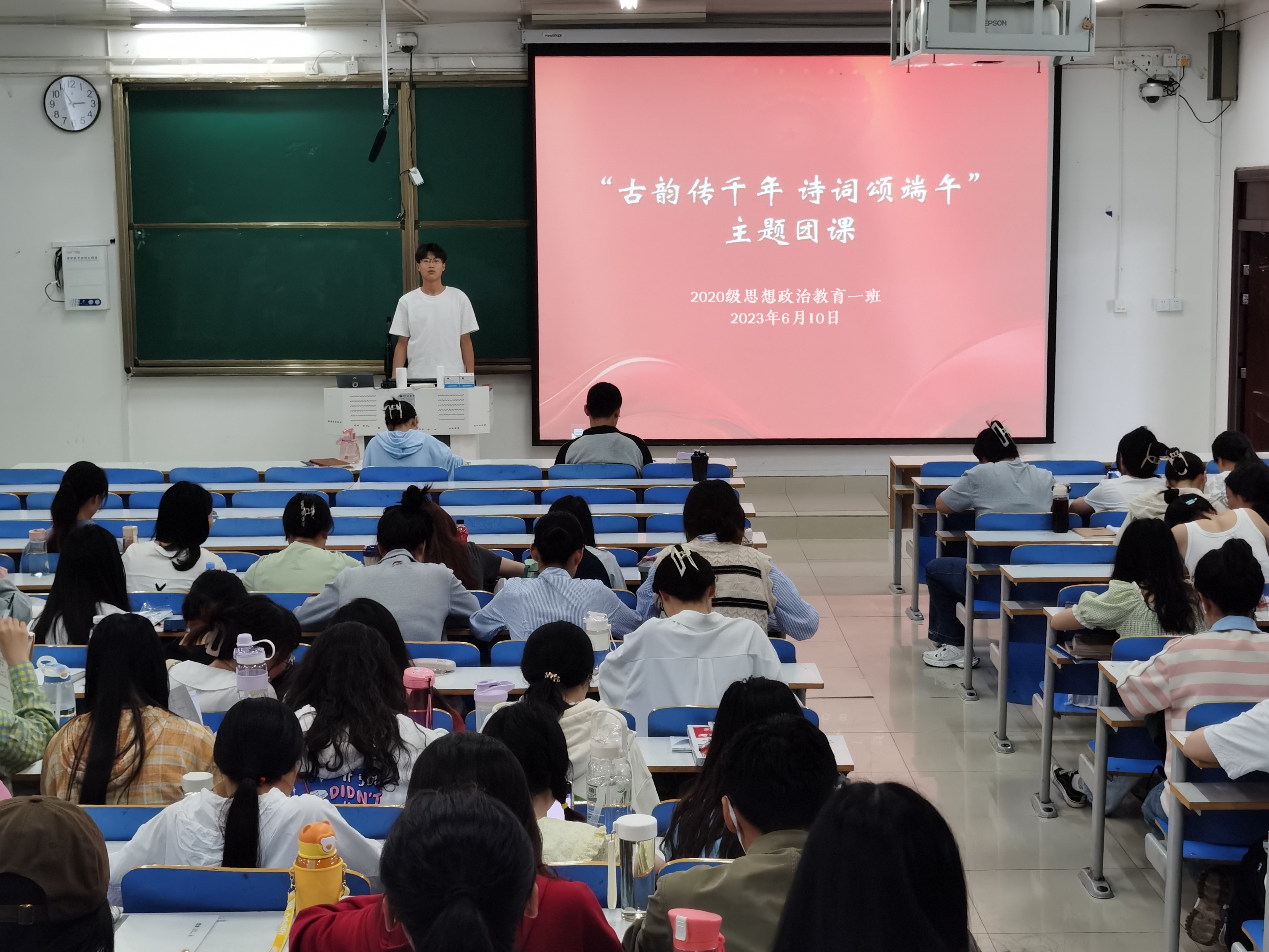 6月10日下午,太阳集团tyc59972020级思想政治教育一班团支部在社科楼514教室开展“古韵颂千年,诗词颂端午”主题团课,2020级思想政治教育一班全体团员参加此次团课。团课由团支部副书记白帅豪主持。