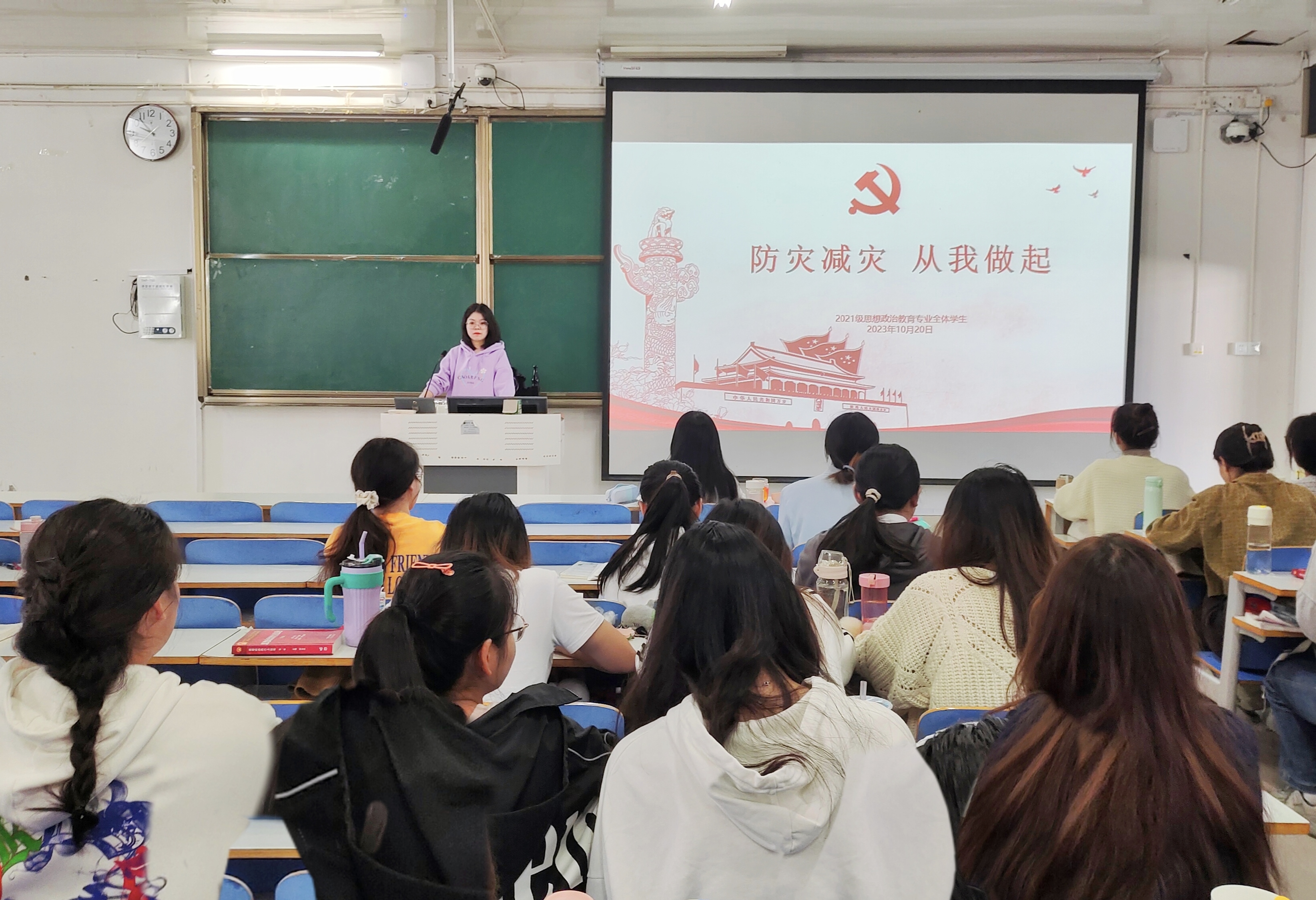 10月20日上午,太阳集团tyc59972021级思想政治教育全体学生在社科楼514教室召开“防灾减灾,从我做起”宣传教育主题班会。2021级思想政治教育全体成员参加此次主题班会。班会由辅导员高小佳主持。