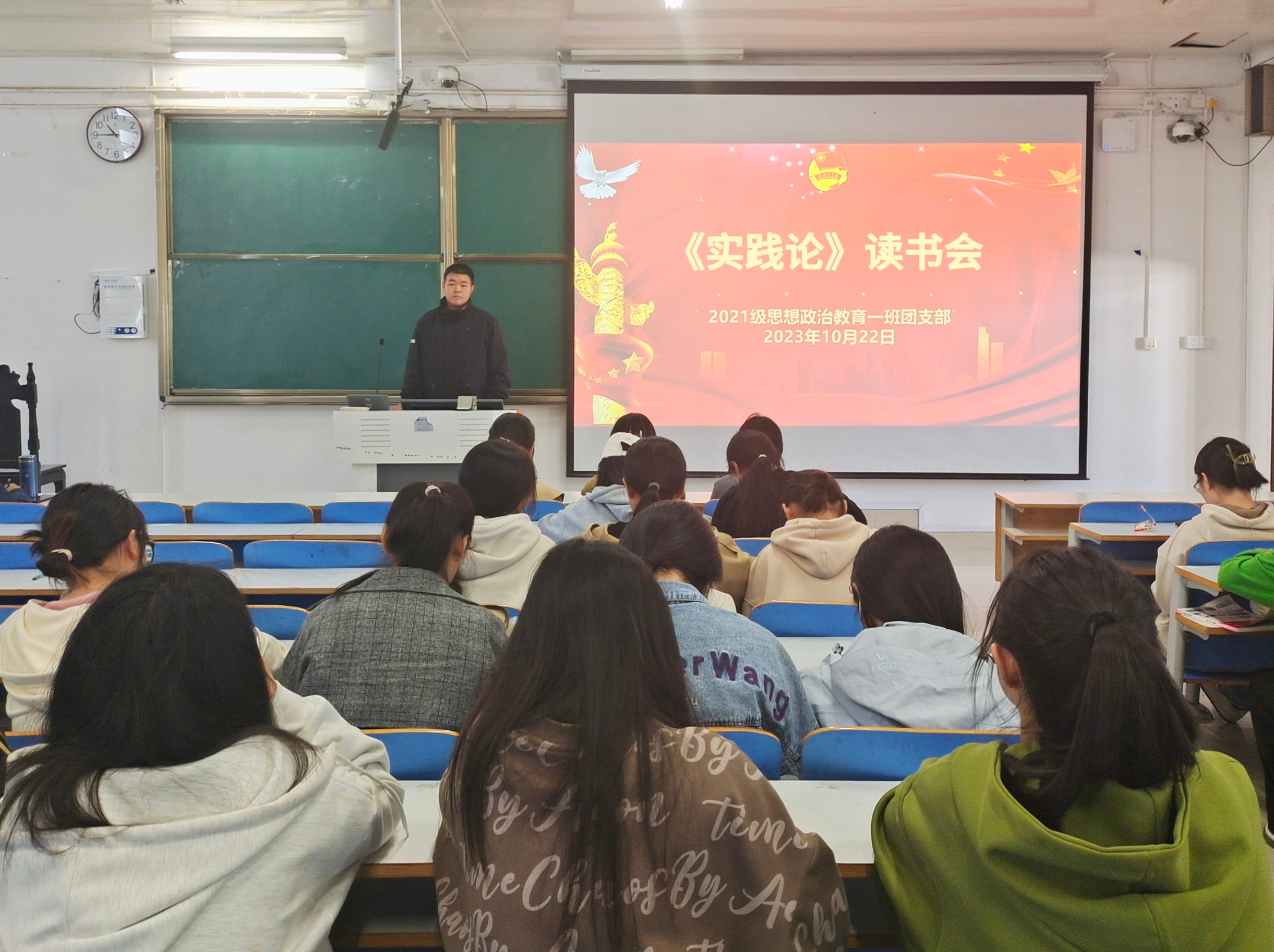 10月22日上午,太阳集团tyc59972021级思想政治教育一班在社科楼514教室召开《实践论》读书会。2021级思想政治教育一班全体成员参加了此次读书会。读书会由团支书戴翰林主持。