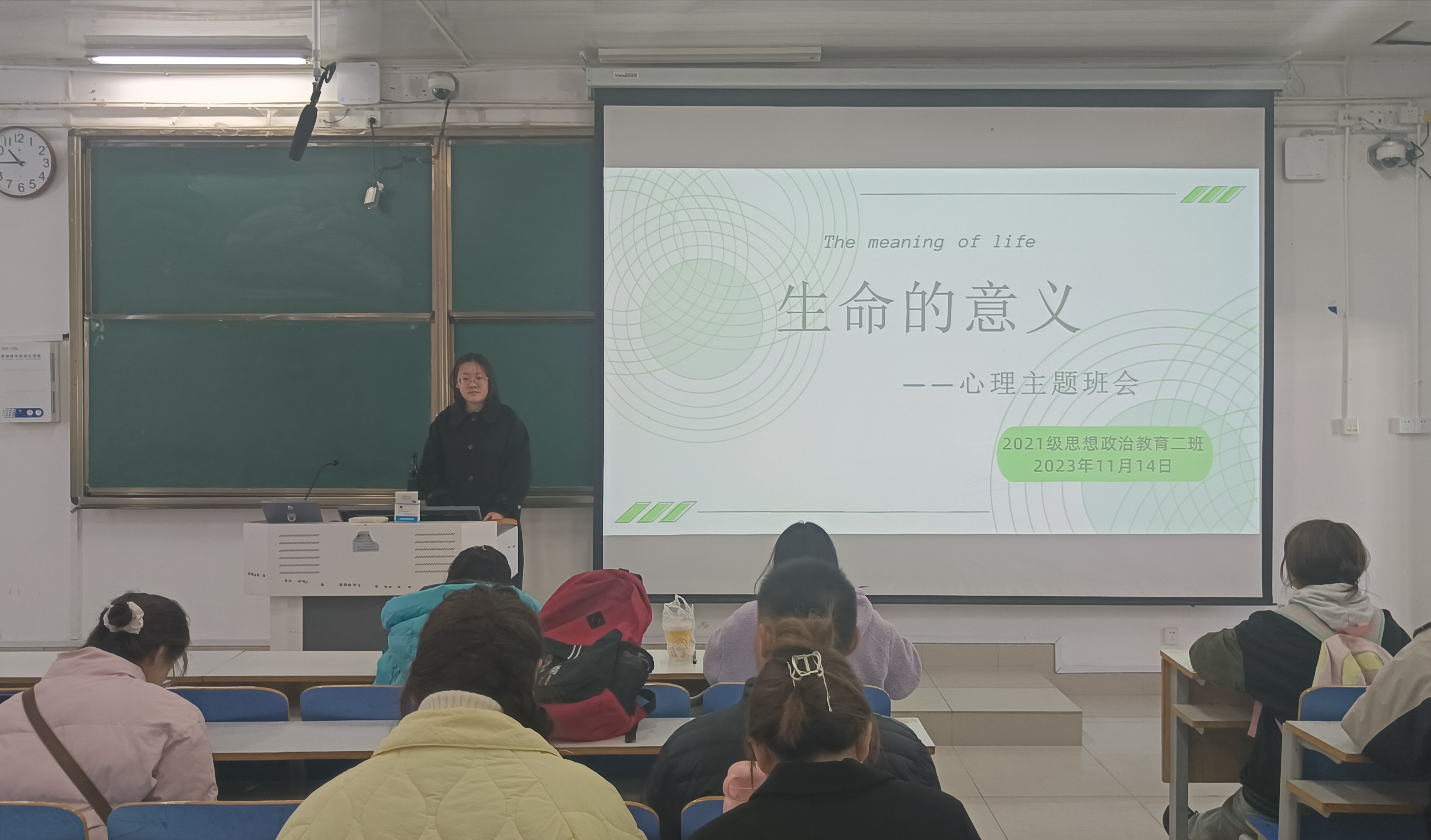 11月14日上午,太阳集团tyc59972021级思想政治教育二班在社科楼514教室召开“生命的意义”心理主题班会。2021级思想政治教育二班全体同学参加此次班会。班会由心理委员李蕾蕾主持。