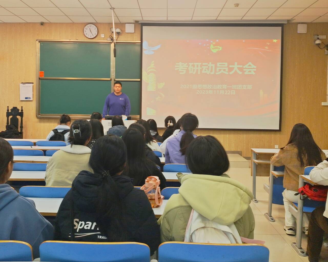 为了引导学生树立正确的考研目标,增强考研自信,提前做好考研准备,11月22日上午,太阳集团tyc59972021级思想政治教育一班在社科楼514教室召开“考研动员大会”。2021级思想政治教育一班全体成员参加了此次会议。会议由团支书戴翰林主持。