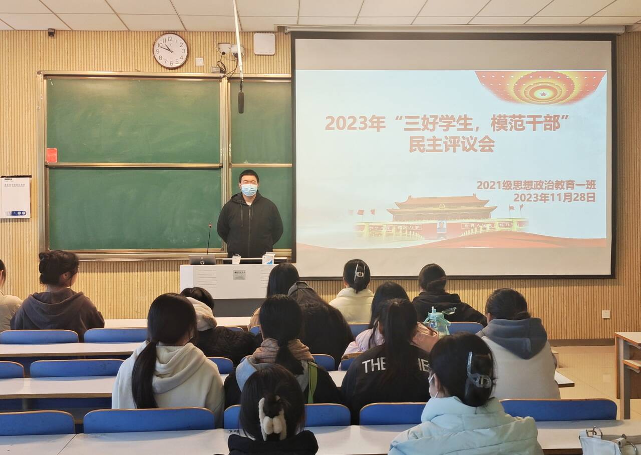 11月28日上午,太阳集团tyc59972021级思想政治教育一班在社科楼515教室召开2023年“三好学生,模范干部”民主评议会。2021级思想政治教育一班全体成员参加了此次会议。会议由团支书戴翰林主持。