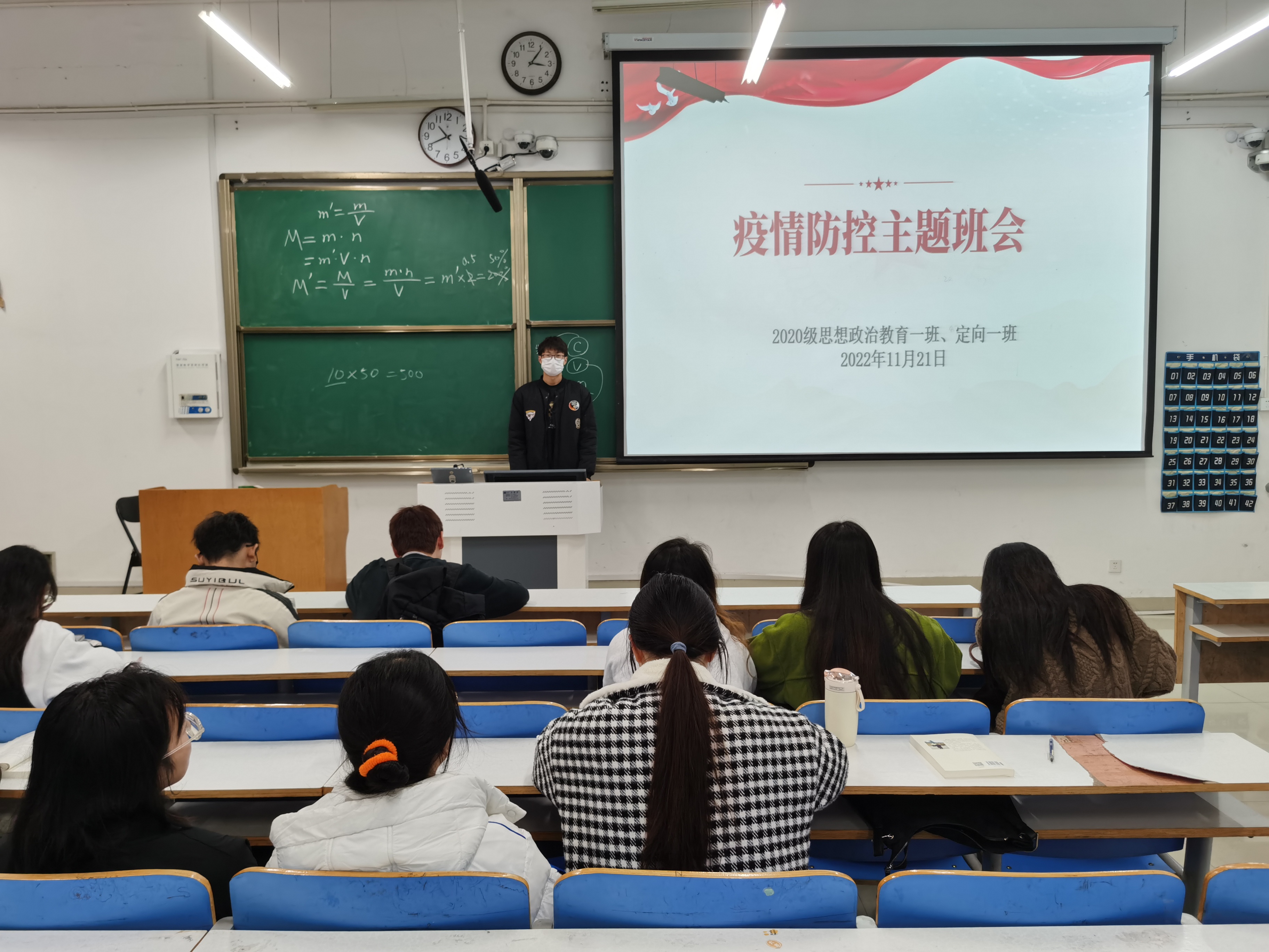 11月21日下午,太阳集团tyc59972020级思想政治教育一班、定向一班在社科楼415教室召开“疫情防控”主题班会。太阳集团tyc59972020级思想政治教育一班、定向一班全体同学参加了本次班会,班会由副班长白帅豪主持。