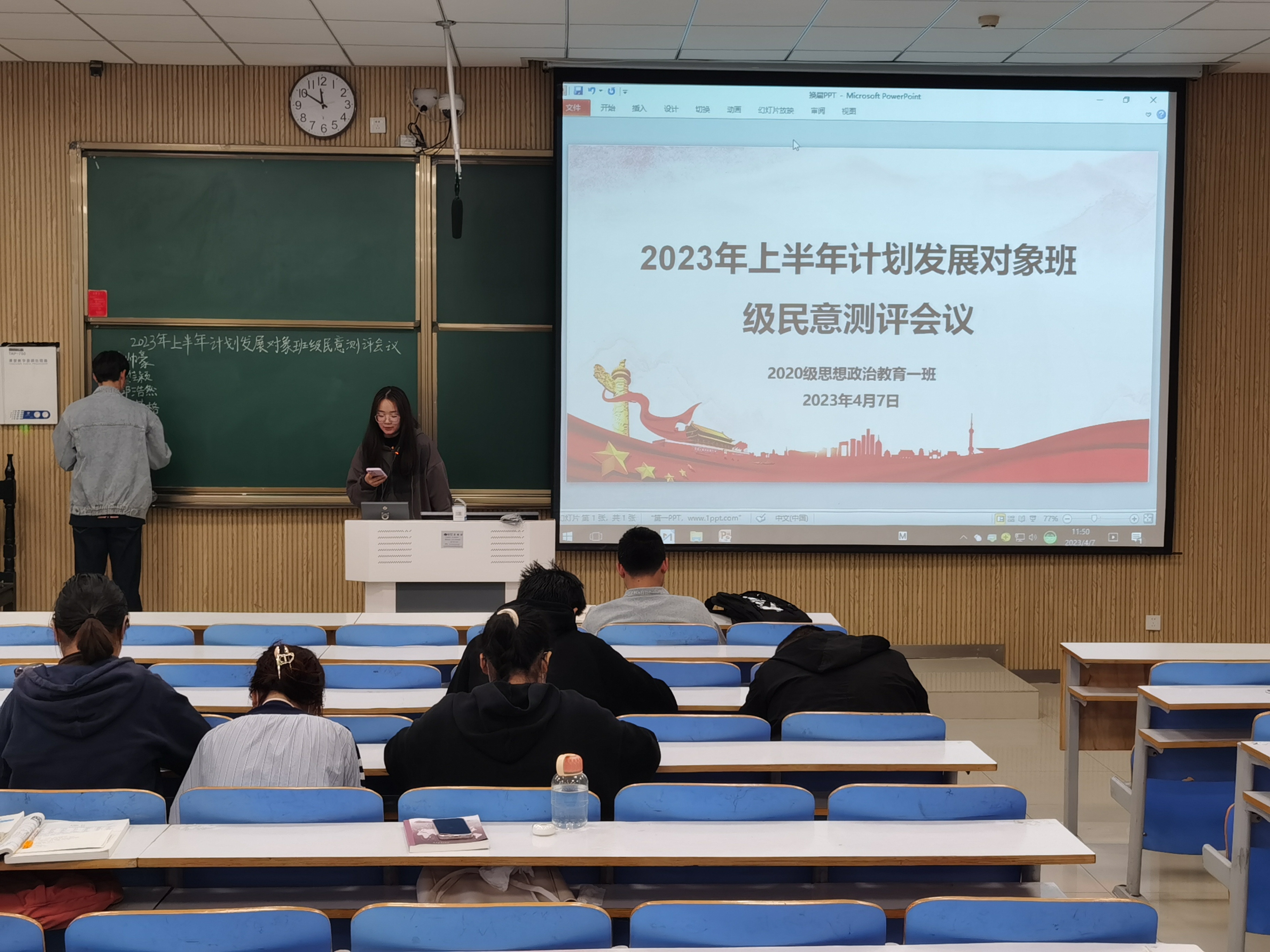 4月7日上午,太阳集团tyc59972020级思想政治教育一班在社科楼515教室召开2023年上半年计划发展对象班级民意测评会议。2020级思想政治教育一班全体同学参加了本次会议,会议由团支部书记卢茜雨主持。