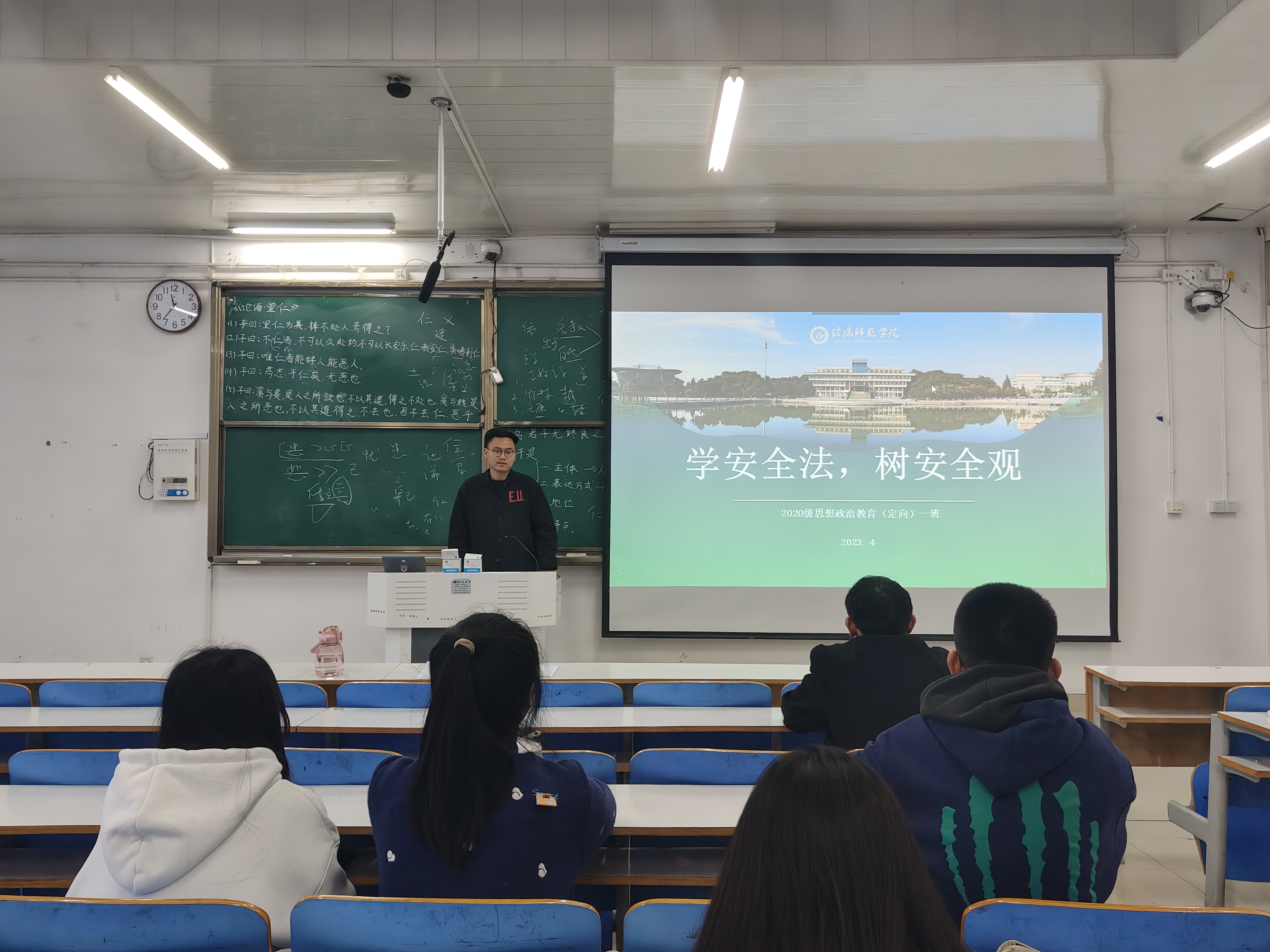 4月15日上午,太阳集团tyc59972020级思想政治教育定向一班在社科楼514教室顺利举行了学安全法、树安全观主题班会。此次班会由团支书朱紫峰主持。