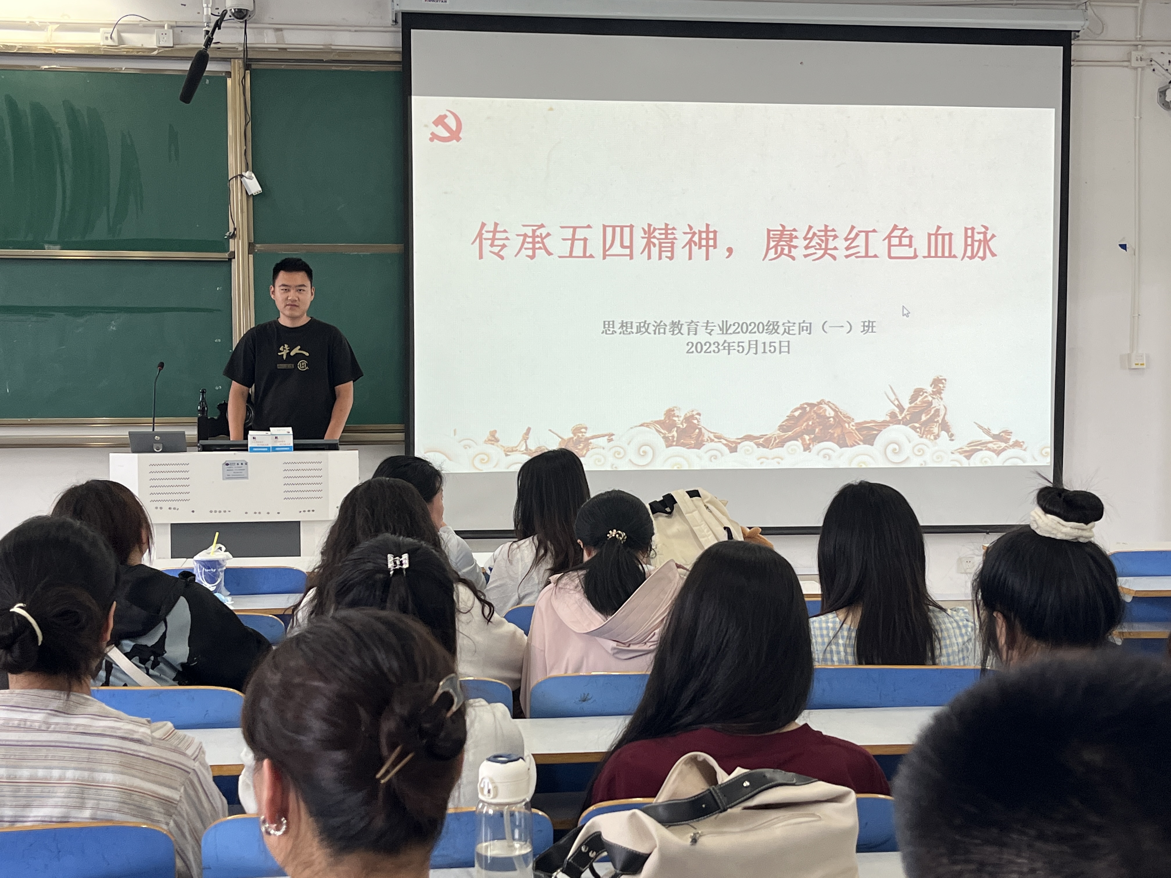 5月15日上午,太阳集团tyc59972020级思想政治教育定向一班在社科楼514教室顺利开展了传承五四精神,赓续红色血脉主题班会。此次班会由团支书朱紫峰主持。