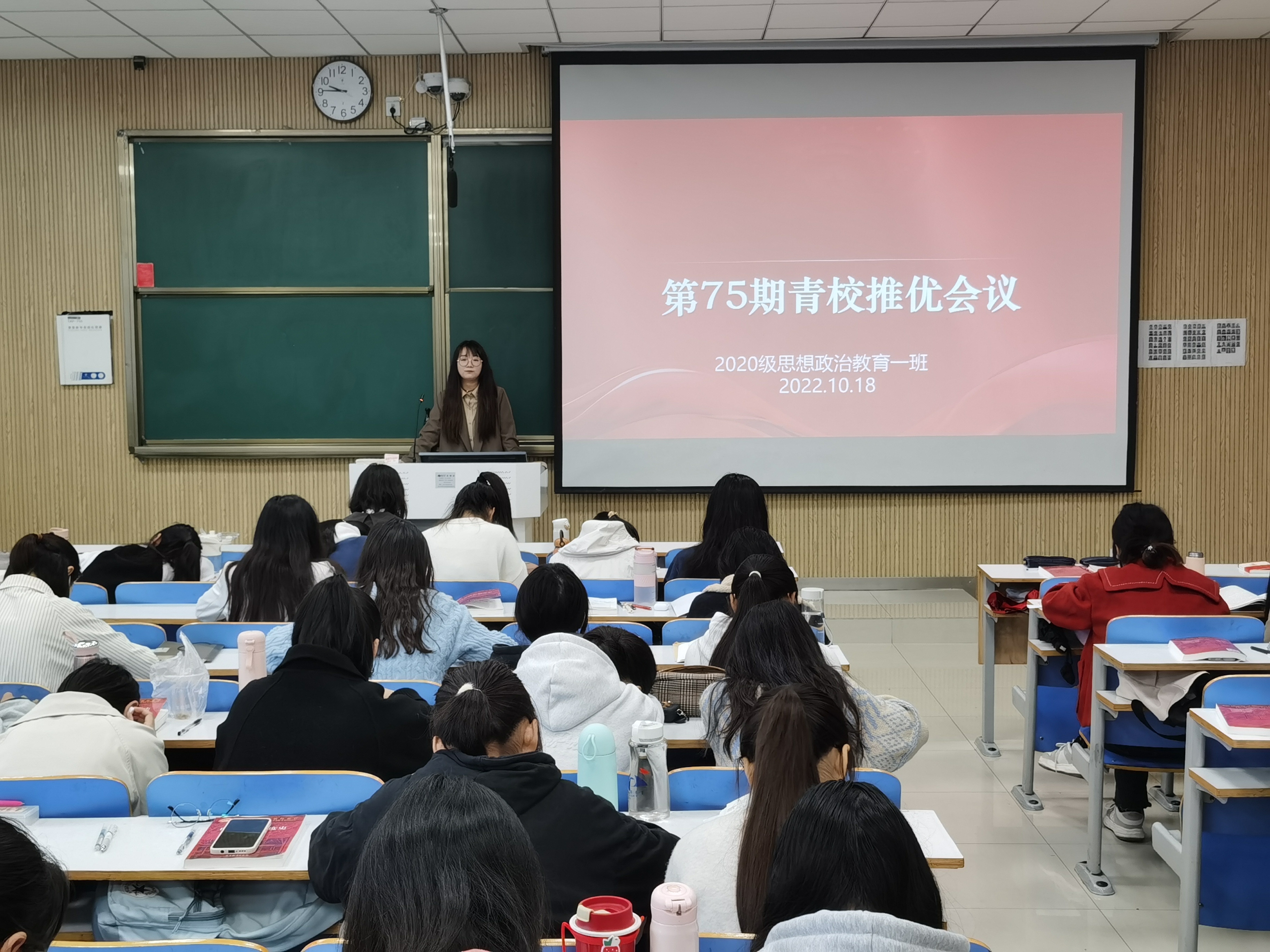 10月18日上午,太阳集团tyc59972020级思想政治教育一班团支部在社科楼515教室顺利召开第73期青校学员推优选举团支部大会。2020级思想政治教育一班全体团员共同参与本次推选大会。本次选举工作由团支书卢茜雨主持。
