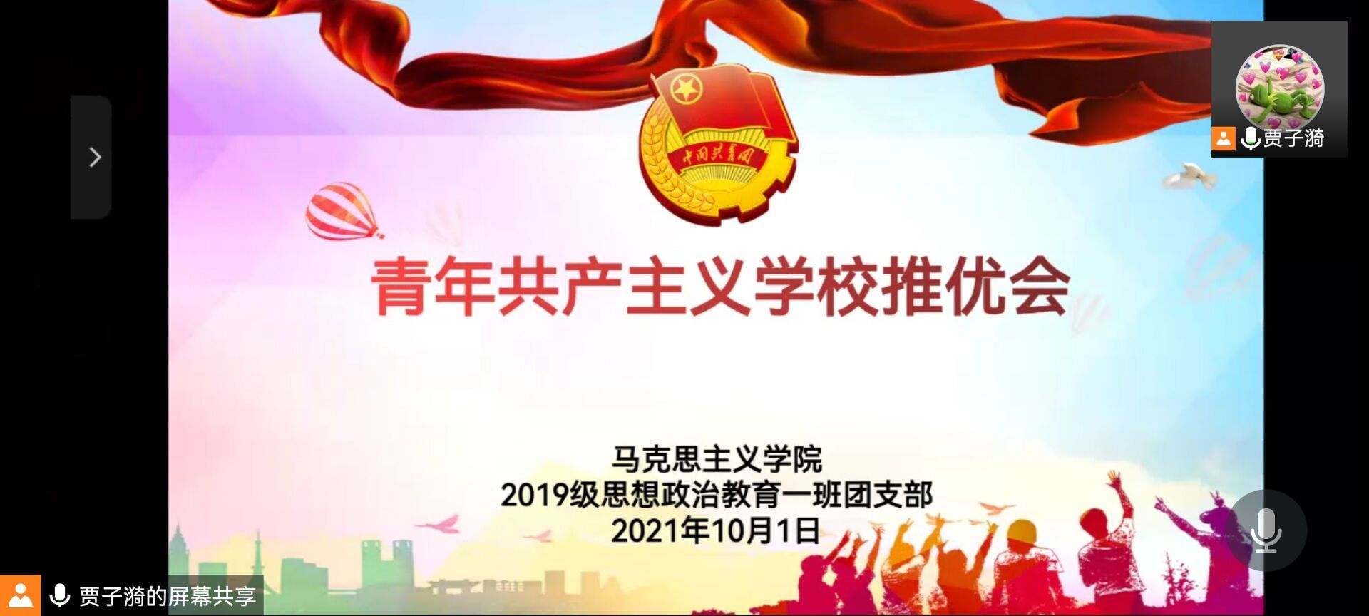 10月1日下午,太阳集团tyc59972019级思想政治教育一班第一团支部在腾讯视频召开“青年共产主义学校推优会”。太阳集团tyc59972019级思想政治教育一班全体成员参与本次会议。会议由副班长王民主持。