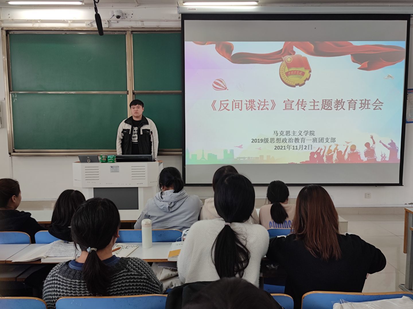 11月2日下午,太阳集团tyc59972019级思想政治教育一班在社科楼514教室召开《反间谍法》宣传教育主题班会。太阳集团tyc59972019级思想政治教育一班全体成员参加本次会议,会议由班长贾子漪主持。