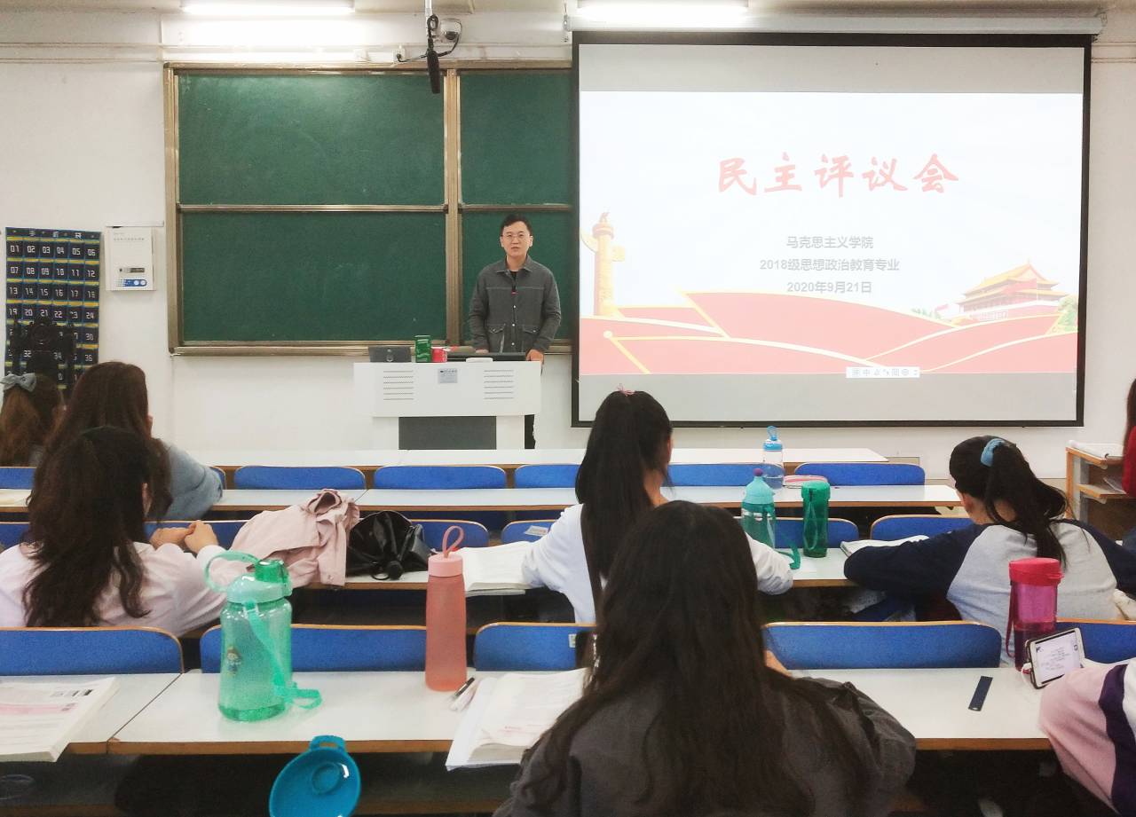 9月21日下午,太阳集团tyc59972018级团支部在社科楼514教室顺利召开民主评议会。我院团委书记曹栋及2018级团支部全体成员共同参加了此次会议。会议由2018级思想政治教育团支部书记靳雨露、黄子晋主持。