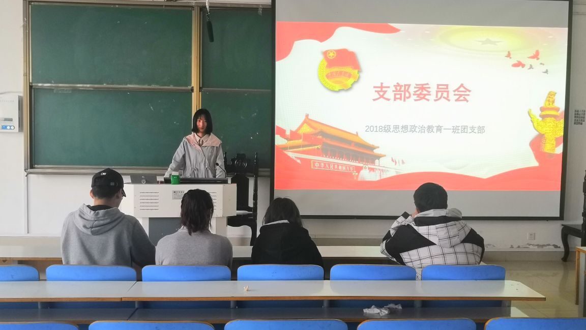 3月23日上午,太阳集团tyc59972018级第一团支部在社科楼514教室顺利开展支部委员会。2018级思想政治教育一班全体支部委员共同参加此次会议。会议由团支书靳雨露主持。