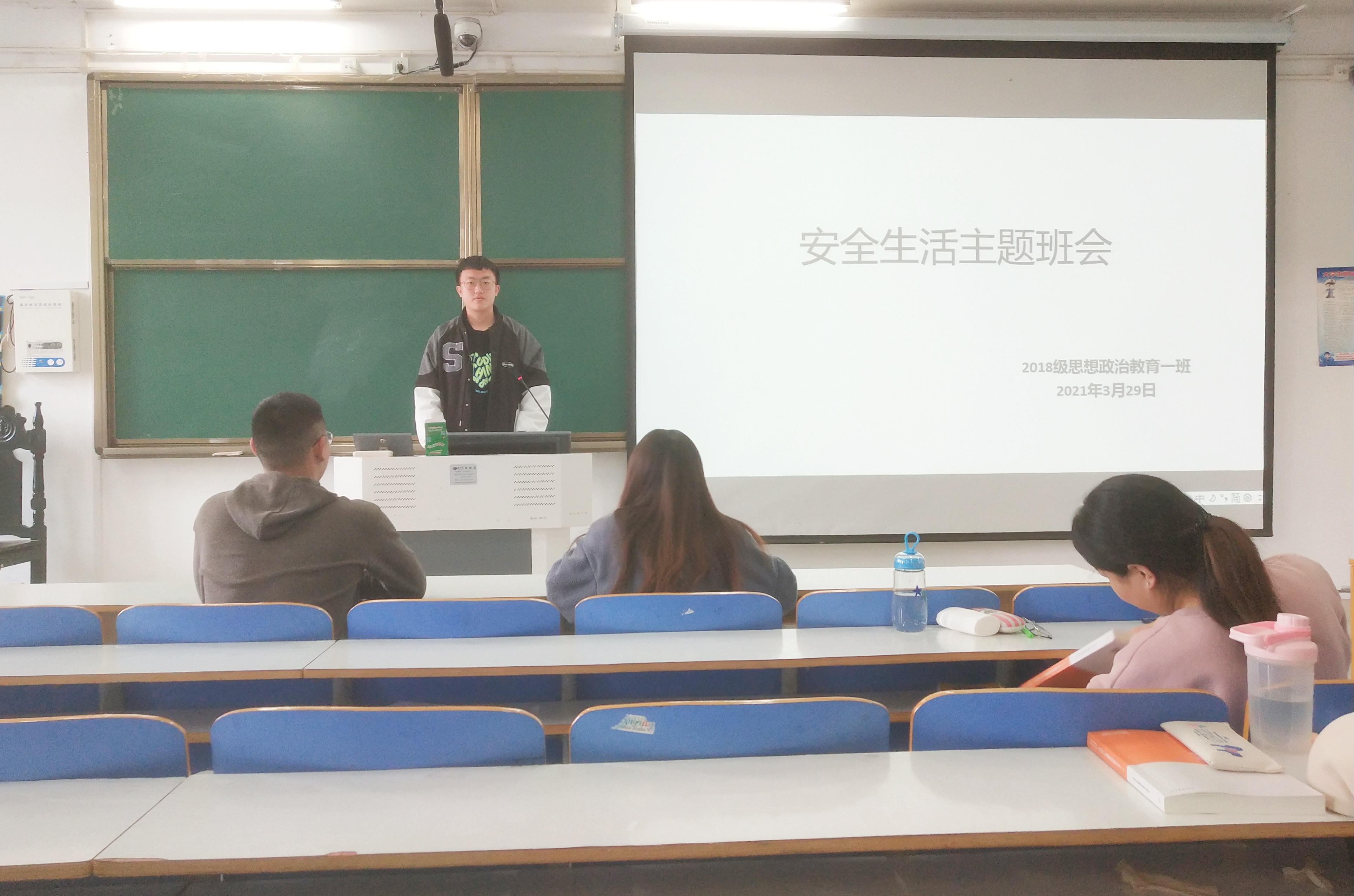 3月29日上午,太阳集团tyc59972018级思想政治教育一班在社科楼514教室顺利开展安全生活主题班会。2018级思想政治教育一班全体同学参加了本次班会。会议由班长邢子豪主持。