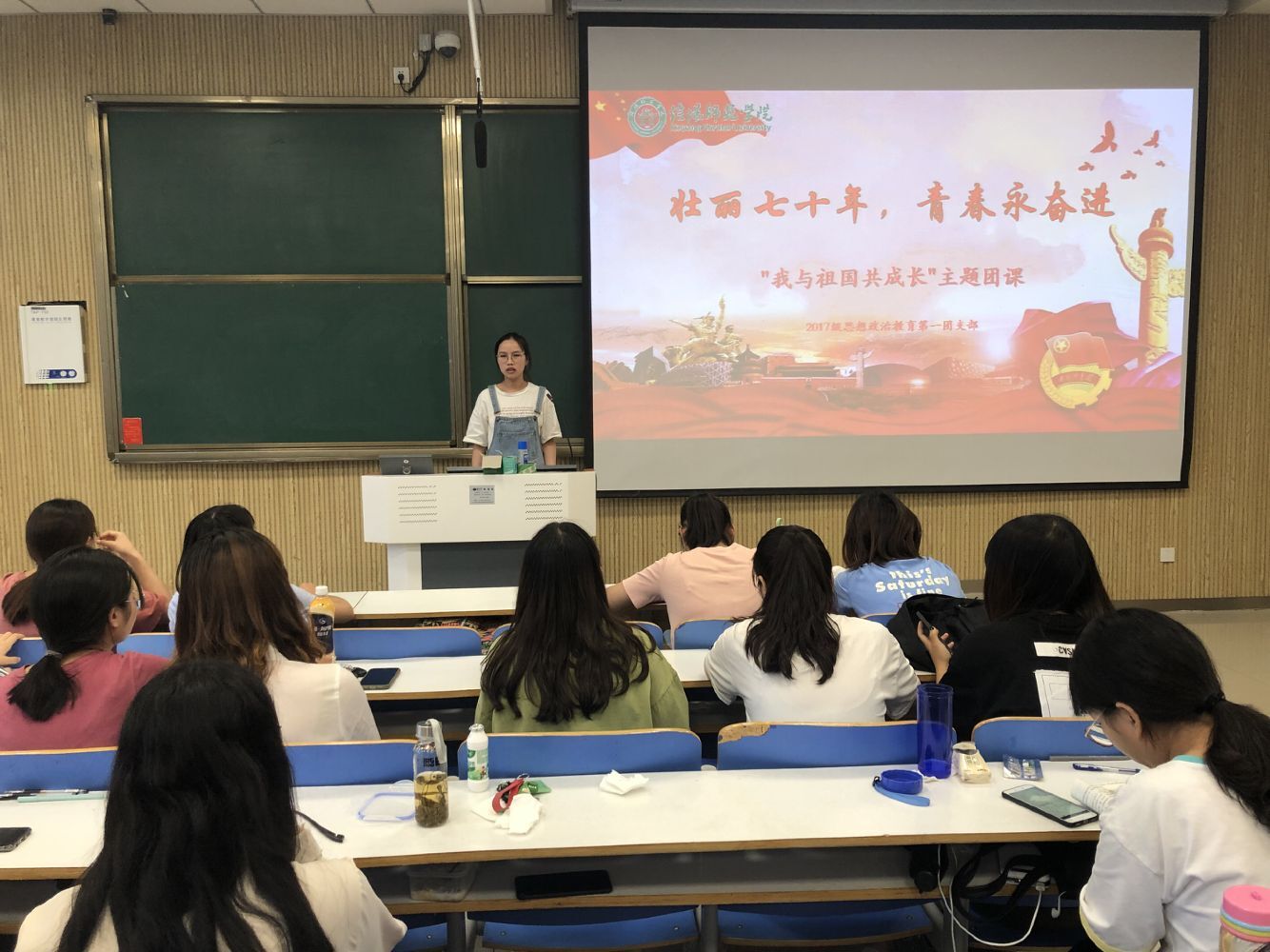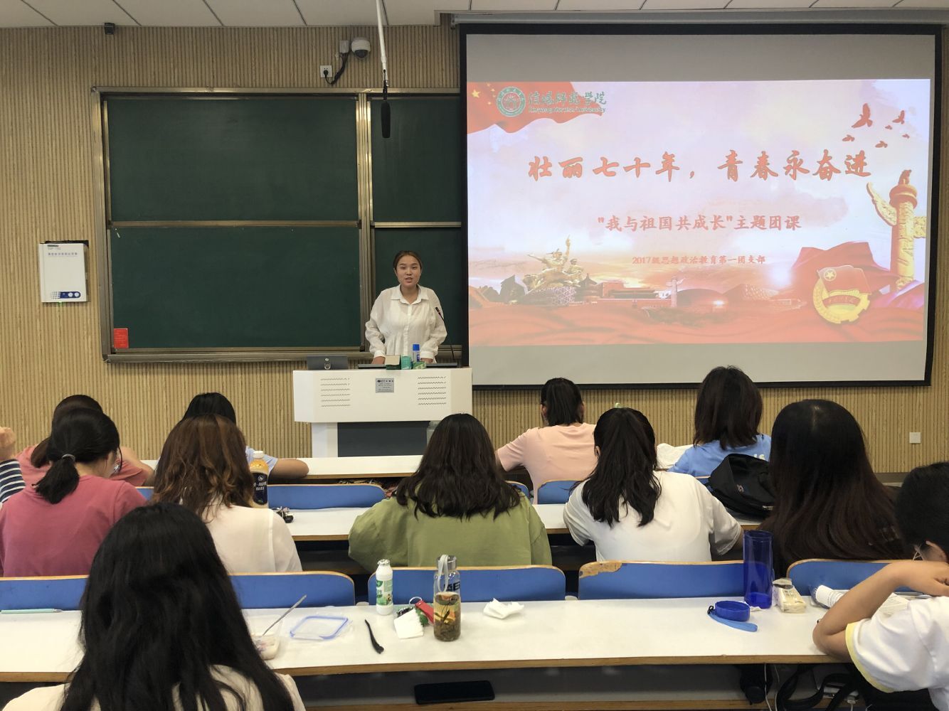 为庆祝新中国成立七十周年,大力弘扬爱国主义精神,9月26日下午,太阳集团tyc59972017级思想政治教育第一团支部在社科楼515教室开展“壮丽七十年,青春永奋进—我与祖国共成长”主题团课活动,本次活动由吴亦昕主持。