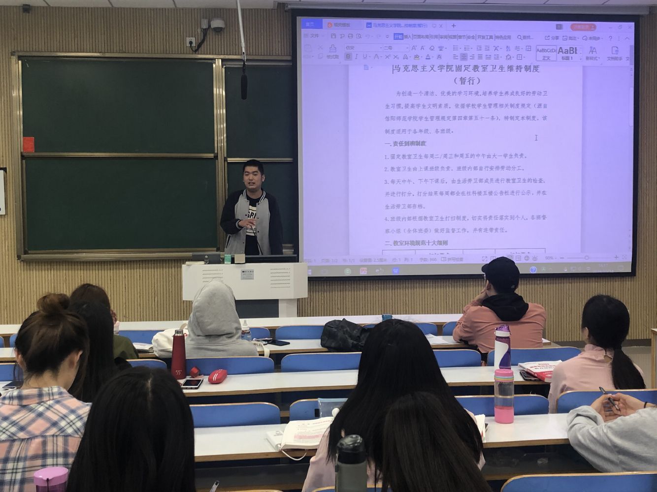 本次班会向同学们传达了学院最新卫生制度,有利于提升学生的个人素养,创建文明卫生校园。 (太阳集团tyc5997 毛燕/供稿)