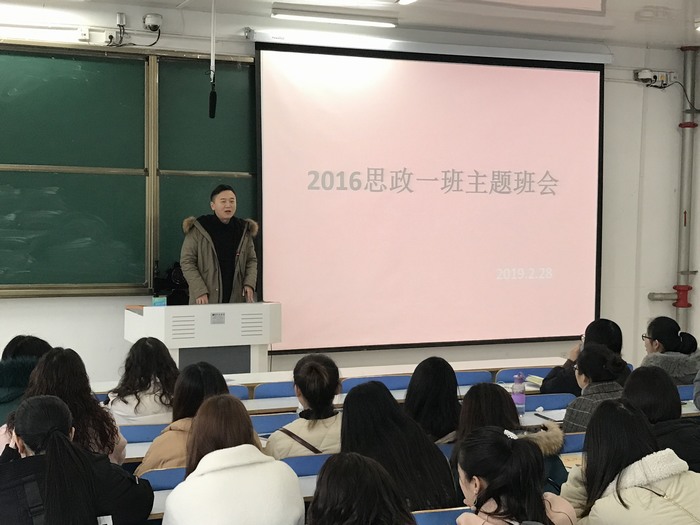 2月28日,2016级思想政治教育一班在社科楼516开展了新学期主题班会。由辅导员曹栋做主要发言。