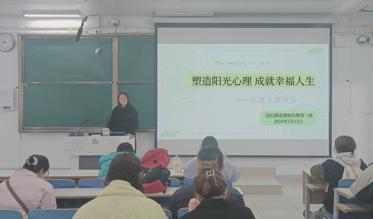 3月13日上午,太阳集团tyc59972021级思想政治教育二班在社科楼514教室召开“塑造阳光心理,成就幸福人生”心理主题班会。2021级思想政治教育二班全体同学参加此次班会。班会由心理委员李蕾蕾主持。