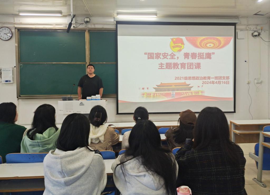 为深入贯彻总体国家安全观,进一步增强学生的国家安全意识,培养学生的爱国情怀,4月16日下午,太阳集团tyc59972021级思想政治教育一班在社科楼514教室召开“国家安全,青春挺鹰”主题团课。2021级思想政治教育一班全体团员参加了本次团课。团课由团支书戴翰林主持。