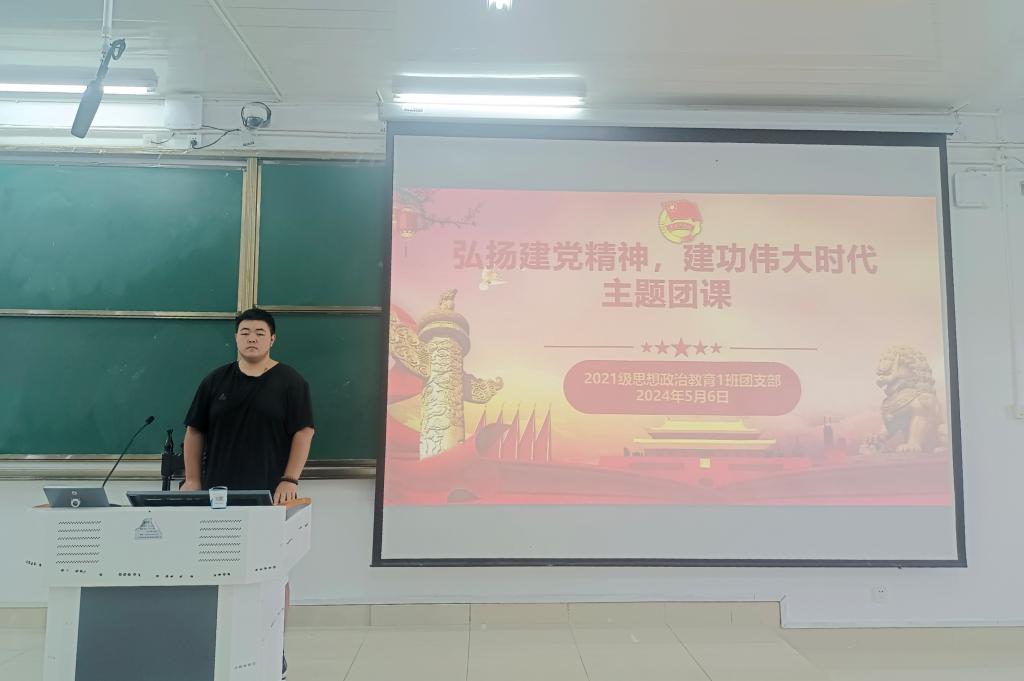 5月6日上午,太阳集团tyc59972021级思想政治教育一班在社科楼514教室召开“弘扬建党精神,建功伟大时代”主题团课。2021级思想政治教育一班全体团员共同参加本次团课,团课由团支书戴翰林主持。