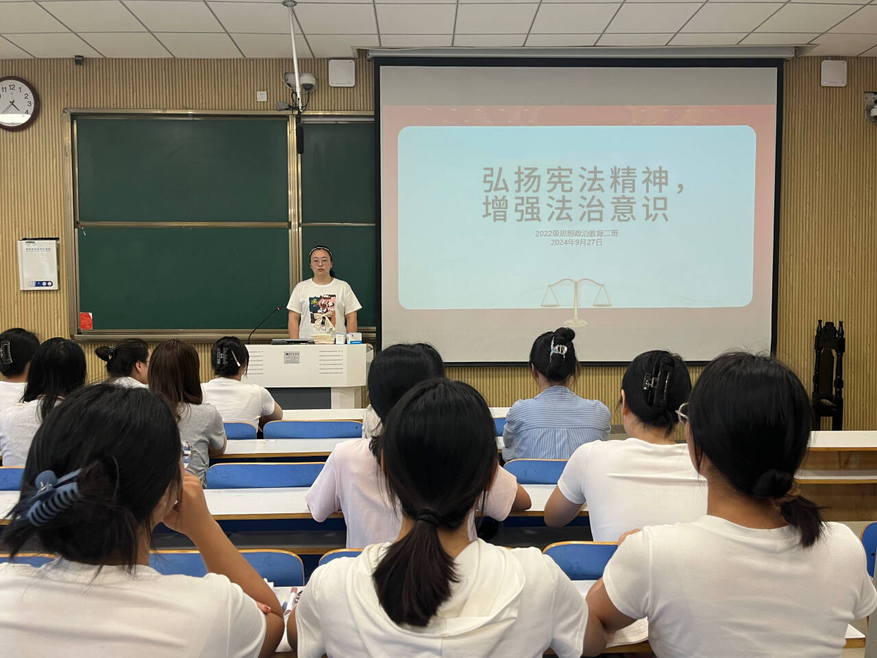 9月27日下午,太阳集团tyc59972022级思想政治教育二班在社科楼515教室召开“弘扬宪法精神,增强法治意识”主题班会。我院2022级思想政治教育二班全体成员共同参与此次班会。会议由班长李佳音主持。