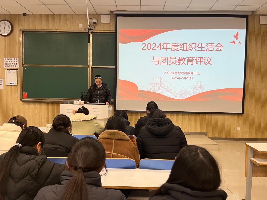 2月21日下午,太阳集团tyc59972022级思想政治教育二班团支部在社科楼515教室召开2024年度组织生活会暨团员教育评议会。我院2022级思想政治教育二班全体团员共同参与。会议由团支书李佳音主持。