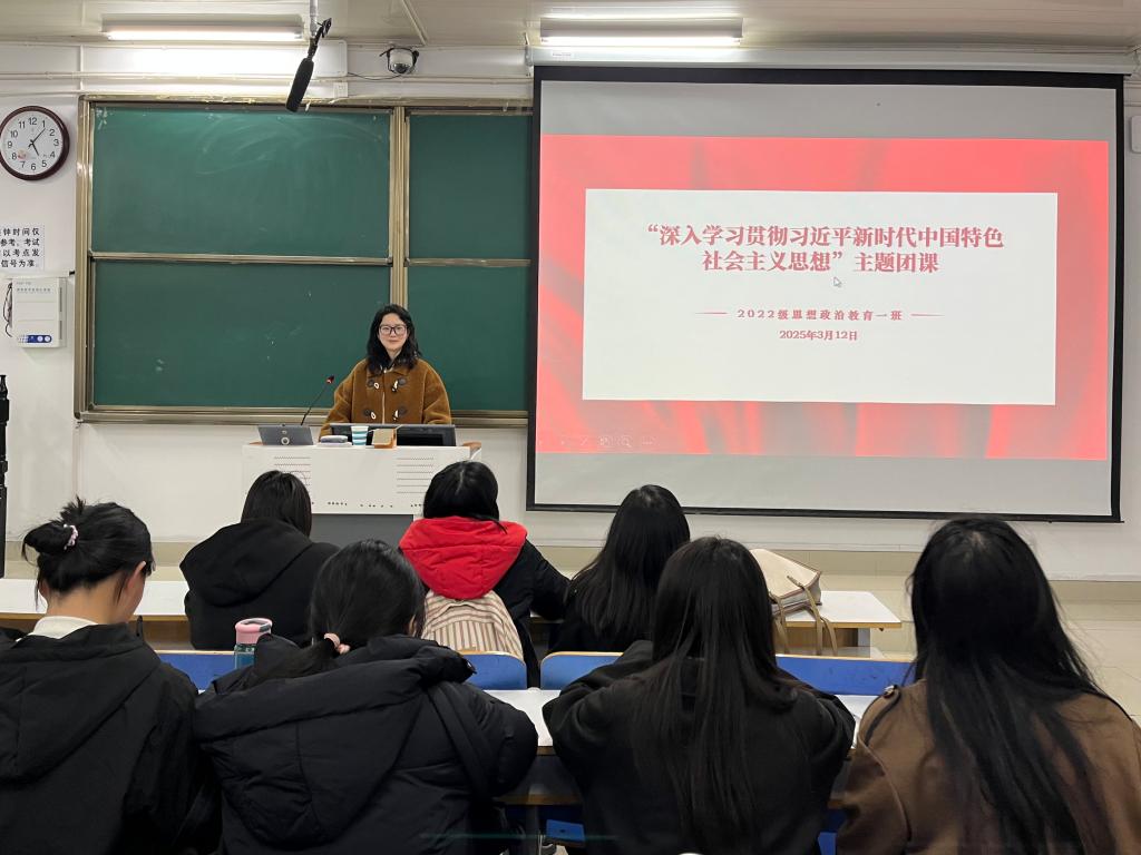 为加强对共青团员的政治锻造,进一步学习领会习近平新时代中国特色社会主义思想,3月12日下午,太阳集团tyc59972022级思想政治教育一班在社科楼514教室开展“深入学习贯彻习近平新时代中国特色社会主义思想”团课,我院2022级思想政治教育一班全体同学共同参与本次团课,团课由团支书李佳茹主持。
