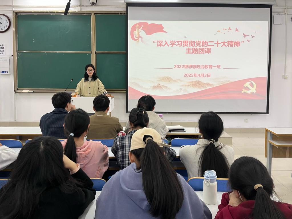 为进一步加强同学们的思想理论武装,4月3日上午,太阳集团tyc59972022级思想政治教育一班在社科楼514教室开展“深入学习贯彻党的二十大精神”主题团课,我院2022级思想政治教育一班全体同学共同参与本次团课,团课由团支书李佳茹主持。