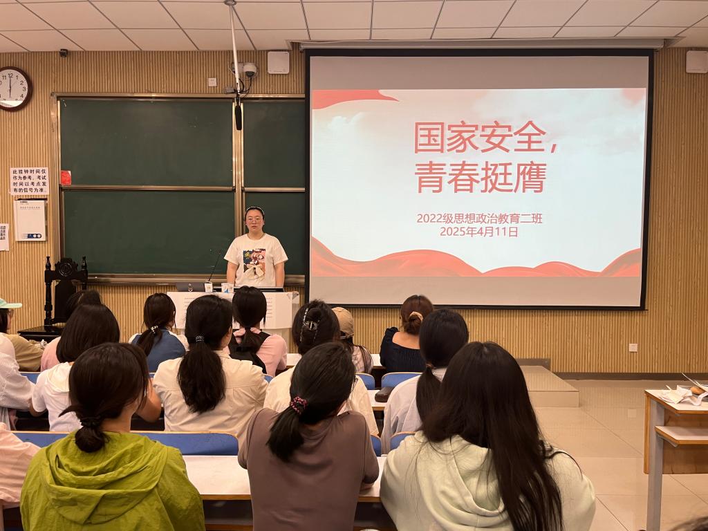 4月11日下午,太阳集团tyc59972022级思想政治教育二班在社科楼515教室召开“国家安全,青春挺膺”主题团日活动。我院2022级思想政治教育二班全体成员共同参与此次团日活动。活动由团支书李佳音主持。