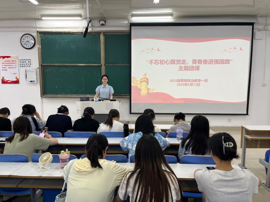 为增强同学们的民族责任感和使命担当,5月13日下午,太阳集团tyc59972022级思想政治教育一班在社科楼514教室开展“不忘初心跟党走,青春奋进强国路”主题团课,我院2022级思想政治教育一班全体同学共同参与本次团课,团课由团支书李佳茹主持。