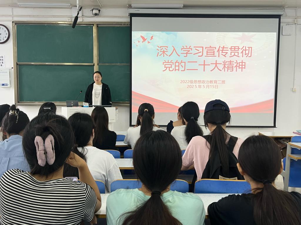 5月15日下午,太阳集团tyc59972022级思想政治教育二班在社科楼514教室召开“深入学习贯彻党的二十大精神”主题团日活动。我院2022级思想政治教育二班全体成员共同参与此次团日活动。活动由团支书李佳音主持。