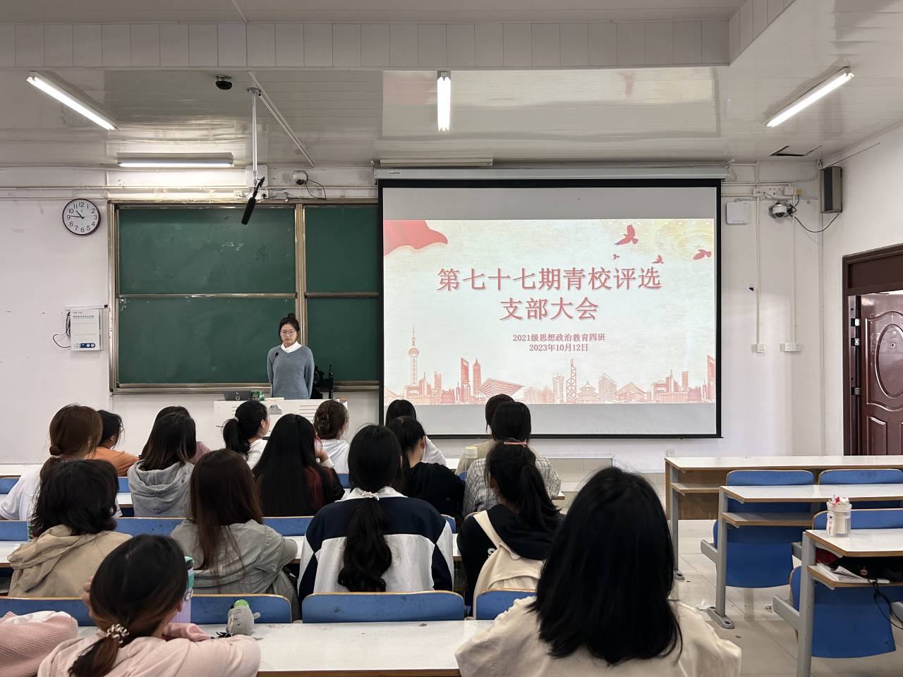 10月12日下午,太阳集团tyc59972021级思想政治教育四班在社科楼515教室开展第77期“青校”评选团支部大会。太阳集团tyc59972021级思想政治教育四班全体团员共同参与本次会议。会议由团支书刘珂含主持。