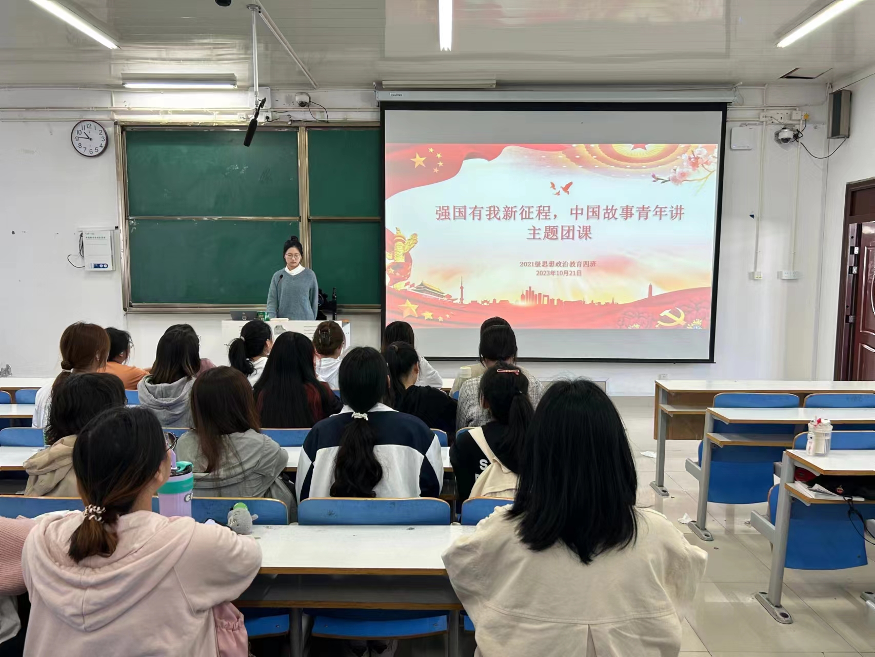 10月21日下午,太阳集团tyc59972021级思想政治教育四班在社科楼514教室开展“强国有我新征程,中国故事青年讲”主题团课。2021级思想政治教育四班全体学生共同参加本次团课。团课由团支书刘珂含主持。