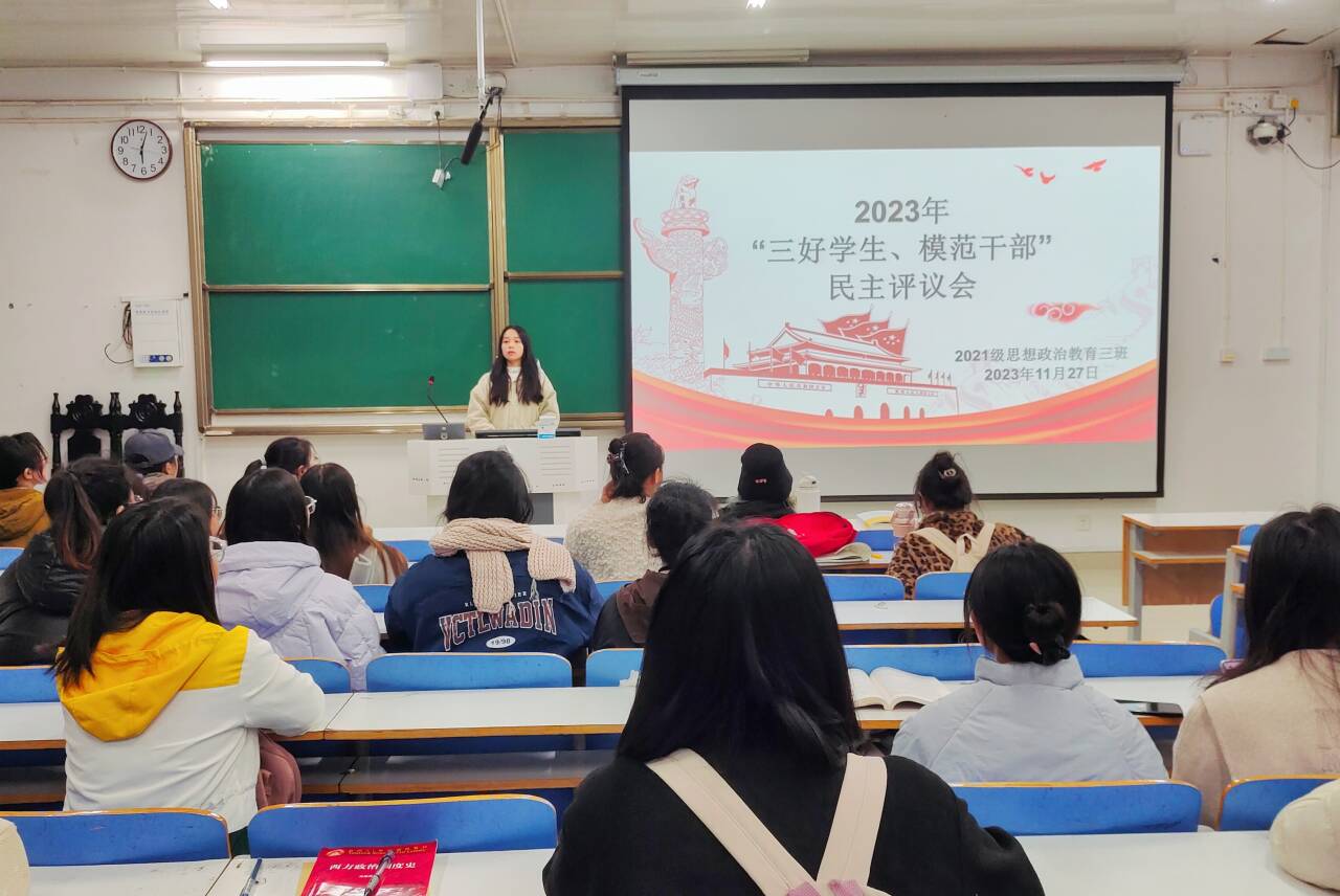 11月27日下午,太阳集团tyc59972021级思想政治教育三班在社科楼514召开2023年“三好学生、模范干部”民主评议会。太阳集团tyc59972021级思想政治教育三班全体成员参与此次会议。会议由班长王岚霄主持,王岚霄任检票员,陈笑宇任记录员。