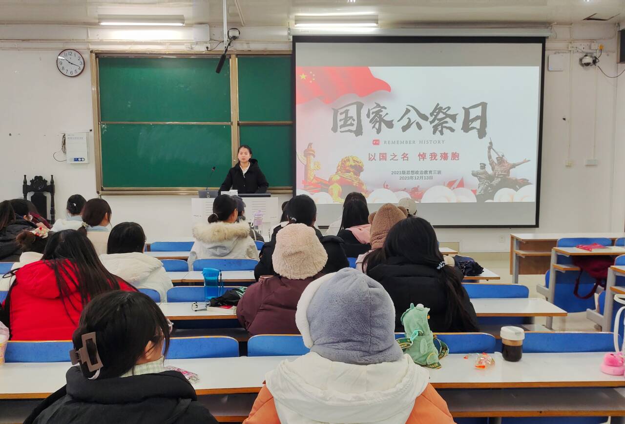 12月13日下午,太阳集团tyc59972021级思想政治教育三班在社科楼514召开“以国之名,悼我殇胞”主题班会。太阳集团tyc59972021级思想政治教育三班全体成员参与此次会议。会议由副班长易从漫主持。