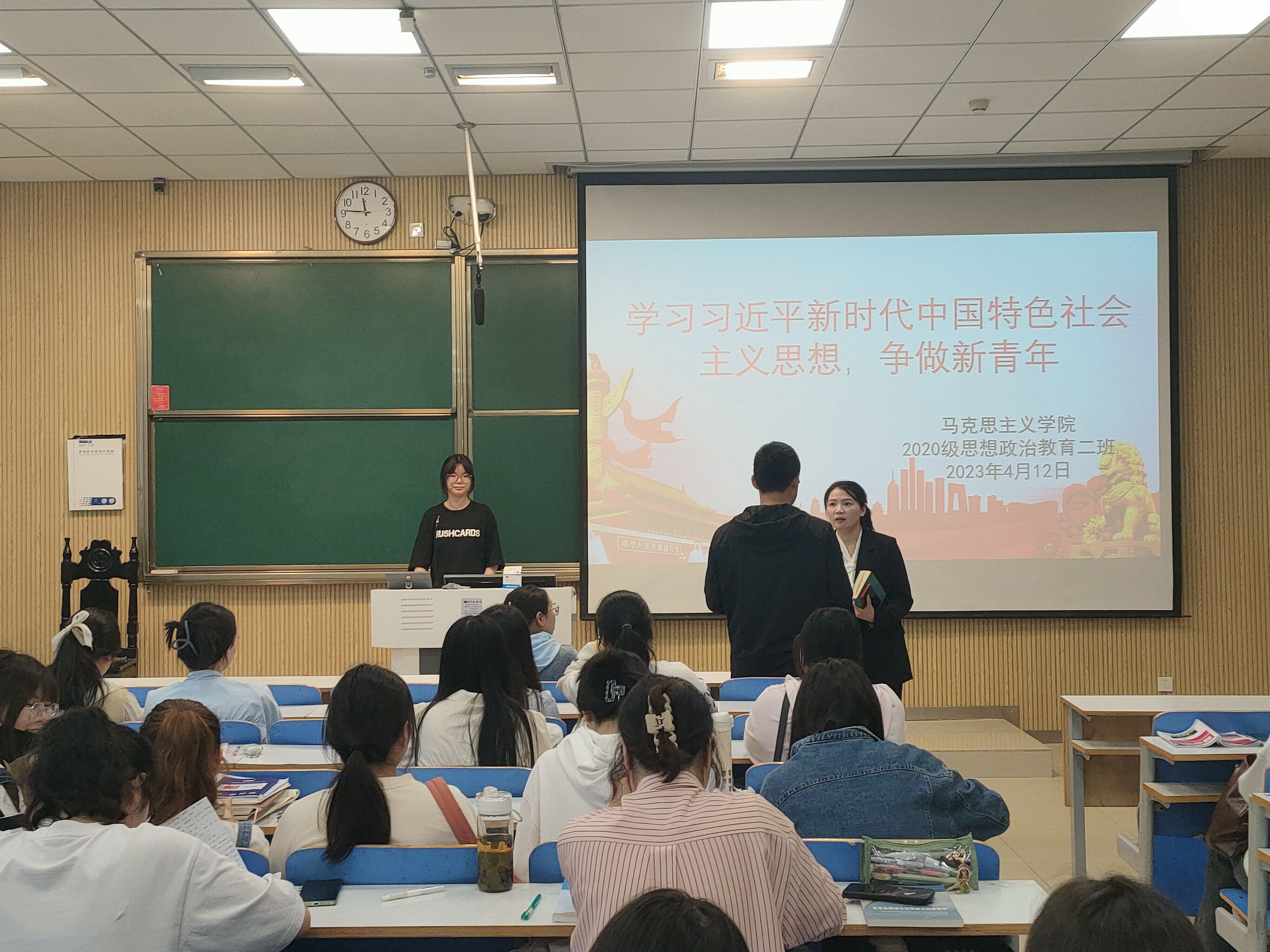 感悟思想伟力,凝聚奋进力量。为积极响应我校关于开展学习宣传贯彻习近平新时代中国特色社会主义思想主题教育的通知要求,推动我班理论学习进一步走深走实,4月12日上午,太阳集团tyc59972020级思想政治教育二班、定向二班团支部在社科楼515教室开展“学习习近平新时代中国特色社会主义思想,争做新时代青年”主题团课。二班、定向二班全体团员共同参与此次团课。团课由团支书李晨曦讲授。