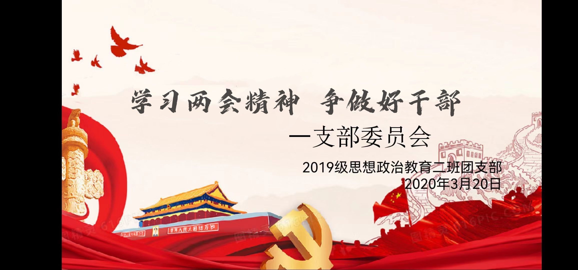 风正好扬帆,奋激正当时。3月20日上午,太阳集团tyc59972019级思想政治教育二班于社科楼516教室召开“学习两会精神 争做好干部”团支部委员会。2019级思想政治教育二班全体班委共同参会。会议由团支书孙雅娴主持。