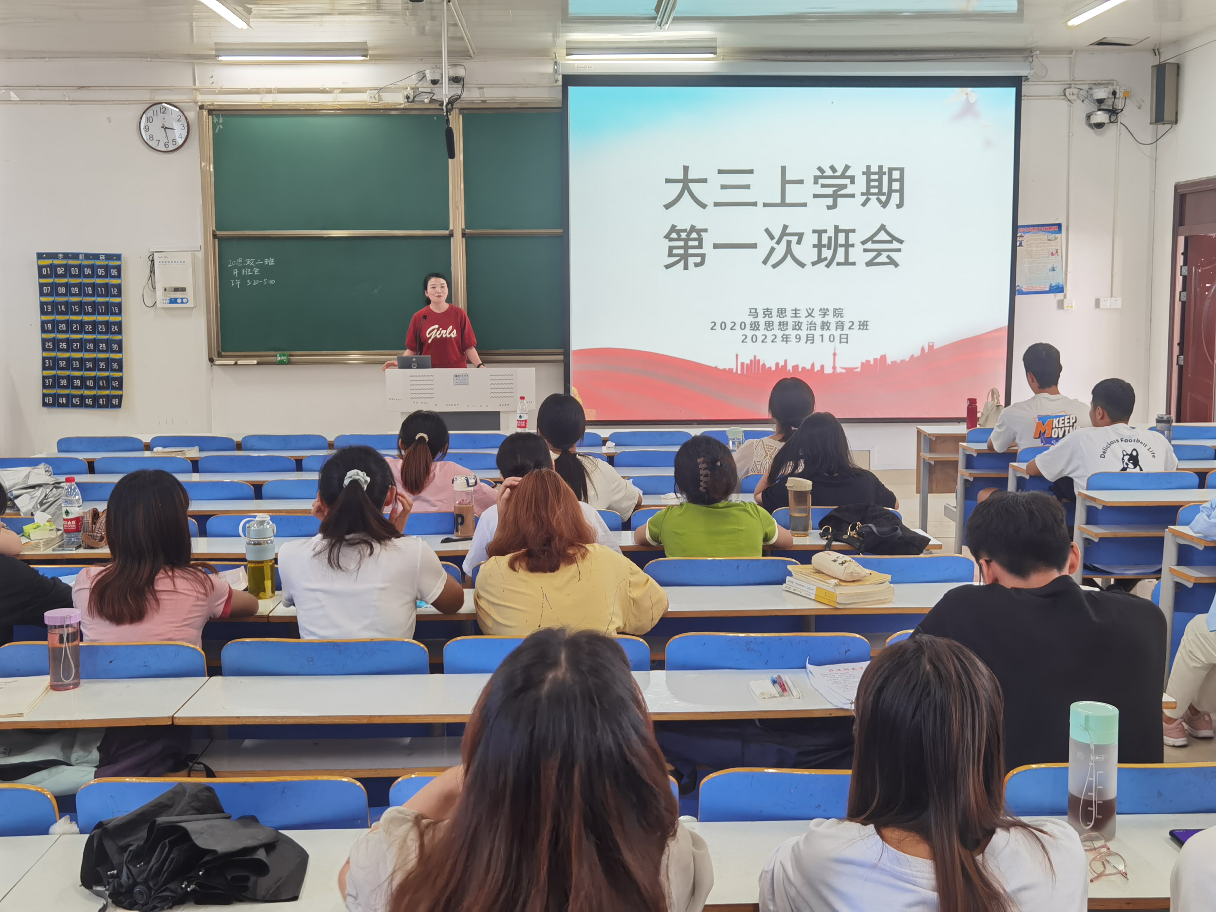 9月10日下午,太阳集团tyc59972020级思想政治教育二班、定向二班在社科楼514教室召开新学期第一次班会。二班、定向二班全体同学参与此次班会。辅导员陶青青出席并主持班会。