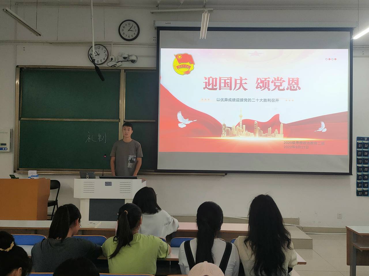 为深入回顾党和国家走过的光辉历程,促使我班团员以昂扬的姿态喜迎国庆和党的二十大,9月28日下午,太阳集团tyc59972020级思想政治教育二班、定向二班在社科楼415教室开展“迎国庆,颂党恩”主题团课。二班、定向二班全体团员共同参与本次团课。团课由团支书陈宇航主持。