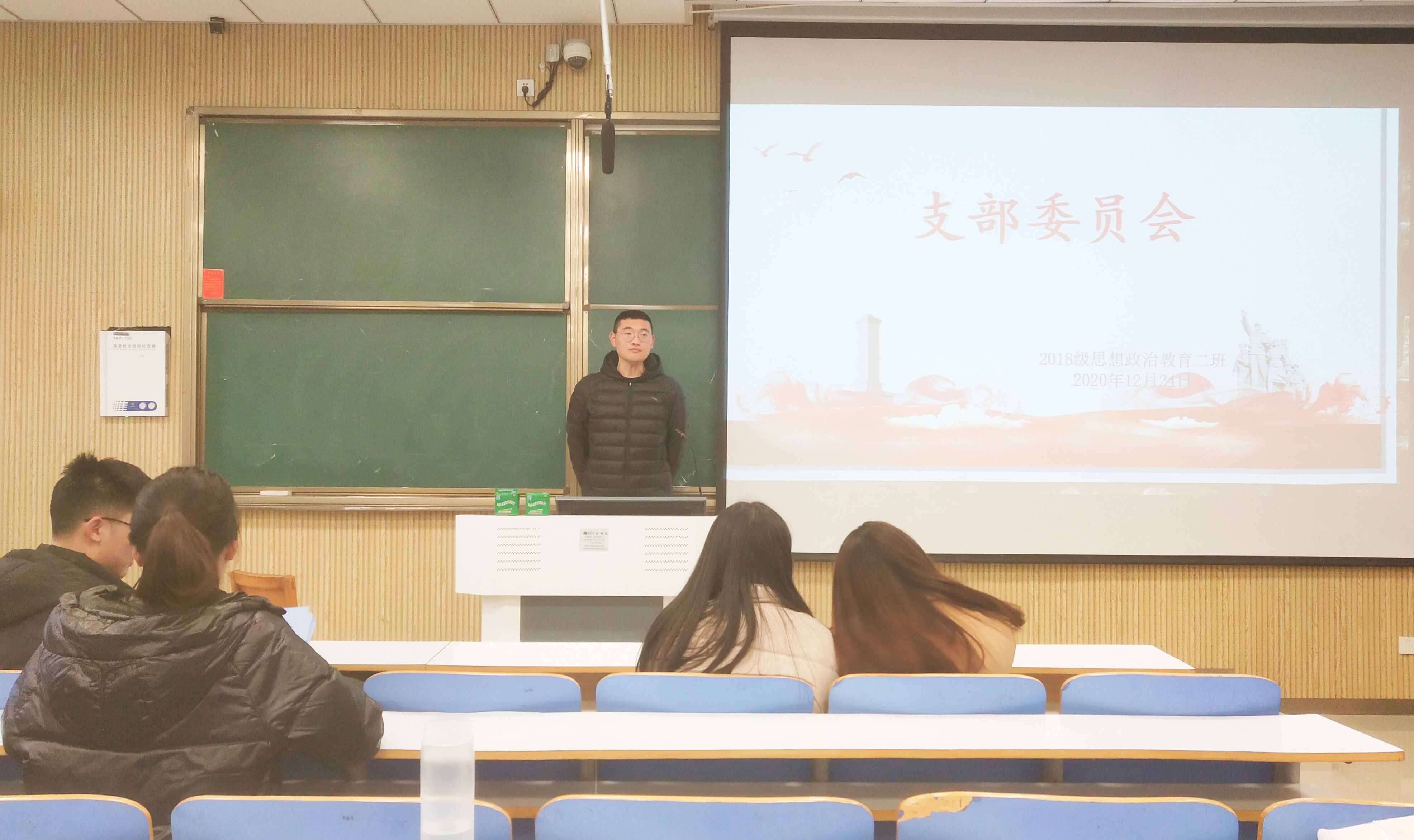 12月24日下午,我院2018级思想政治教育第二团支部在社科楼515教室顺利开展支部委员会。会议由2018级思想政治教育第二团支部副书记杨康主持。
