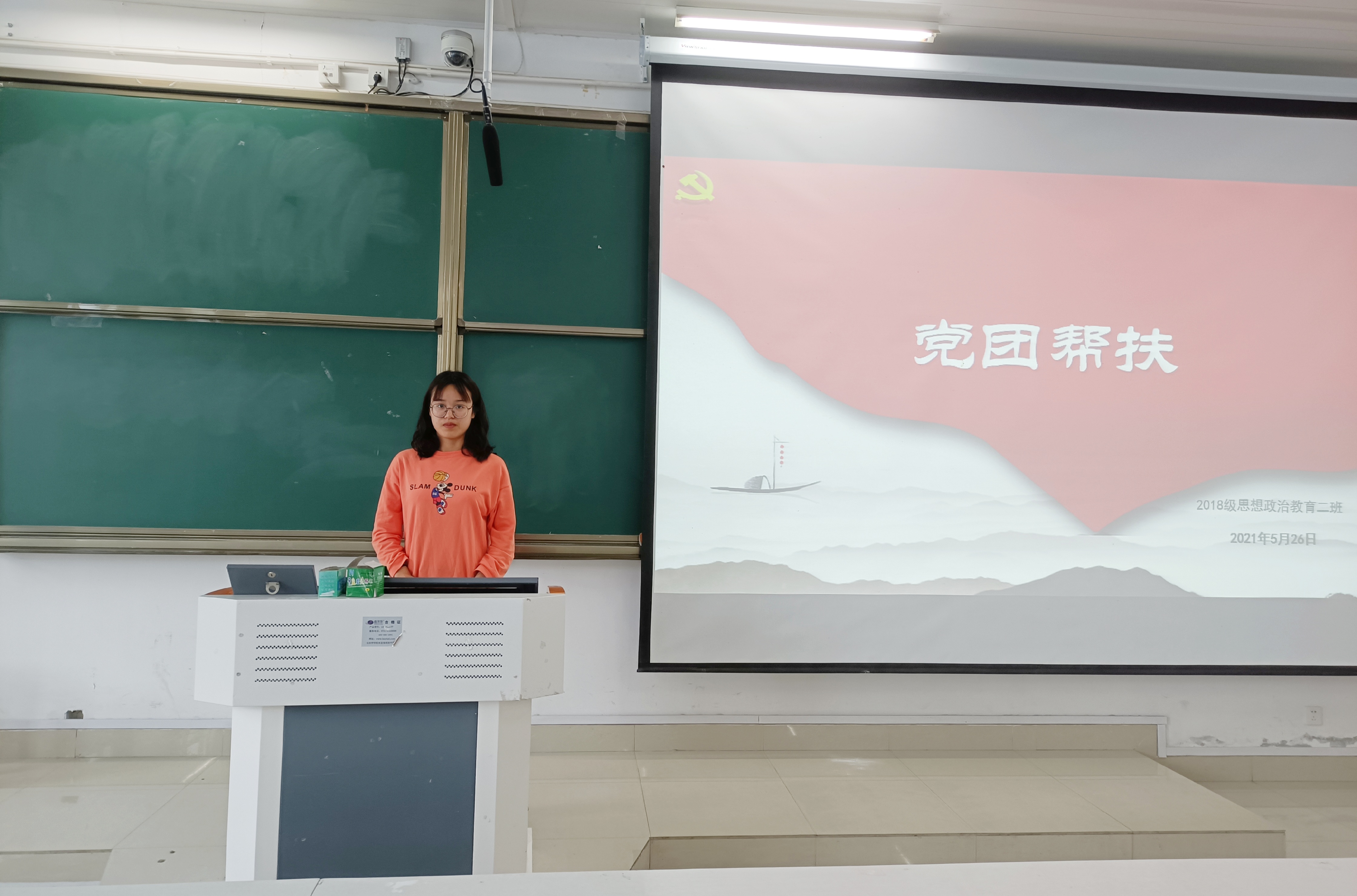 5月26日上午,我院2018级思想政治教育团支部在社科楼516教室顺利开展党团帮扶活动。我院2018级团支部邀请学生党员代表王文芳前来参加此次交流活动。本次活动由2018级思想政治教育第二团支部书记黄子晋主持。