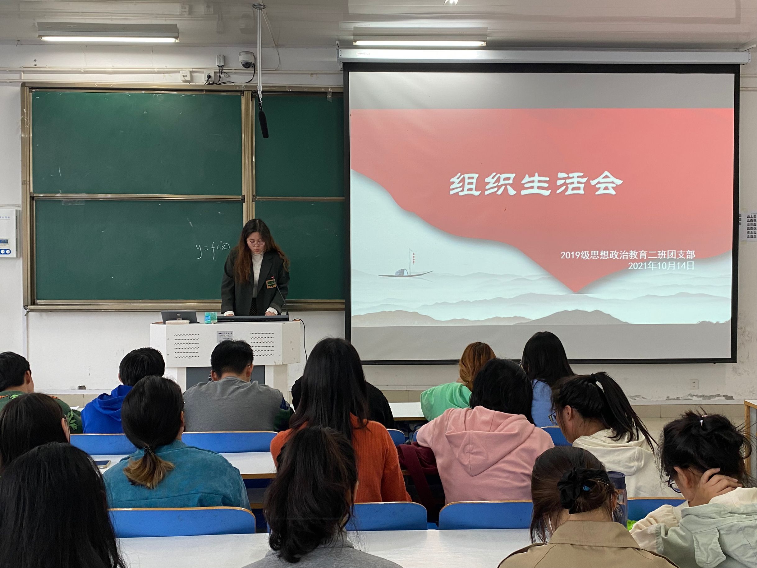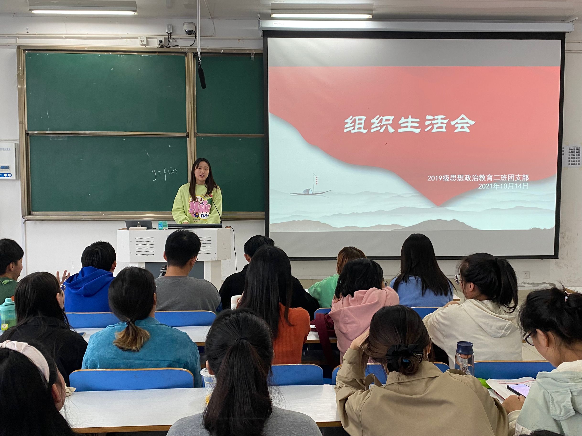 为贯彻落实团中央《关于在全团开展“学党史、强信念、跟党走”》文件精神,进一步推动团支部党史学习教育走深走实,10月14日上午,太阳集团tyc59972019级思想政治教育二班于社科楼516教室召开“学党史、强信念、跟党走”专题组织生活会。2019级思想政治教育二班全体成员共同参会。会议由团支书孙雅娴主持。