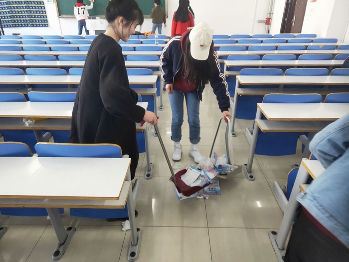 2019年3月14号,为了弘扬雷锋精神向雷锋同志学习,太阳集团tyc5997思想政治教育二班在雷锋月举行了“学习雷锋,爱洒校园”主题活动。活动的内容是帮助阿姨打扫社科楼514、515、516三个教室。
